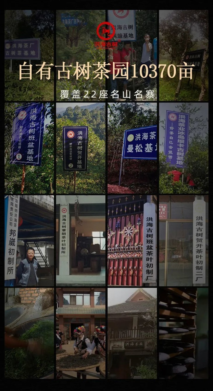 自有23座茶山的山头,位于云南冰岛村附近一带,共10370亩古树茶园,均有洪海的标识。