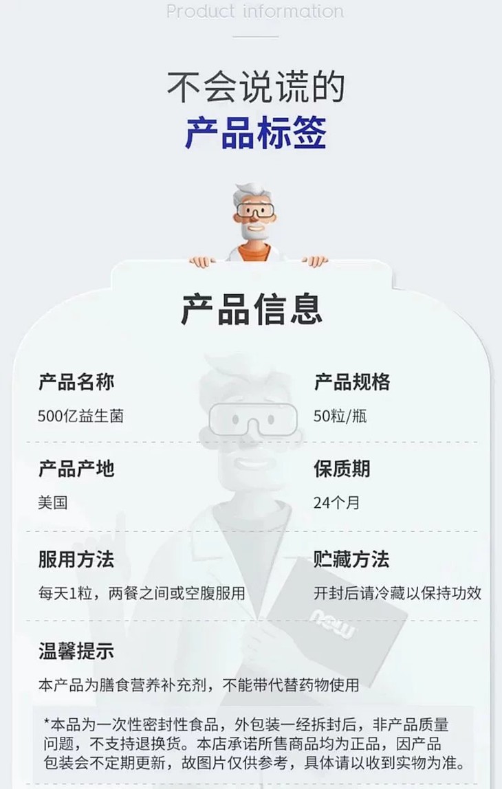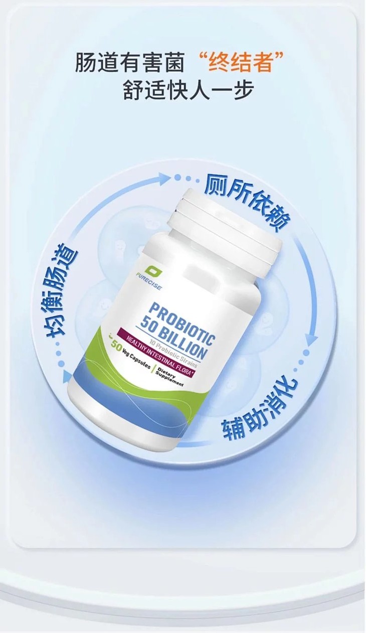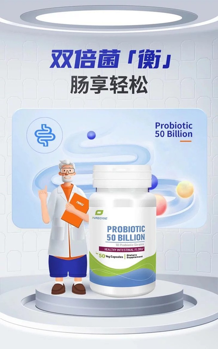 【超性价比-500亿肠漏益生菌】Probiotic 50B 每粒500亿 每瓶50天剂量 耐活十大菌株 肠漏修复 Purecise