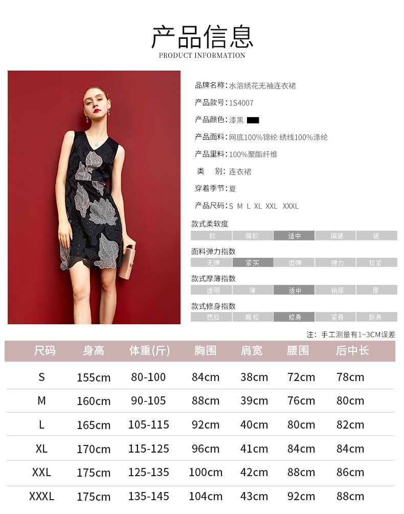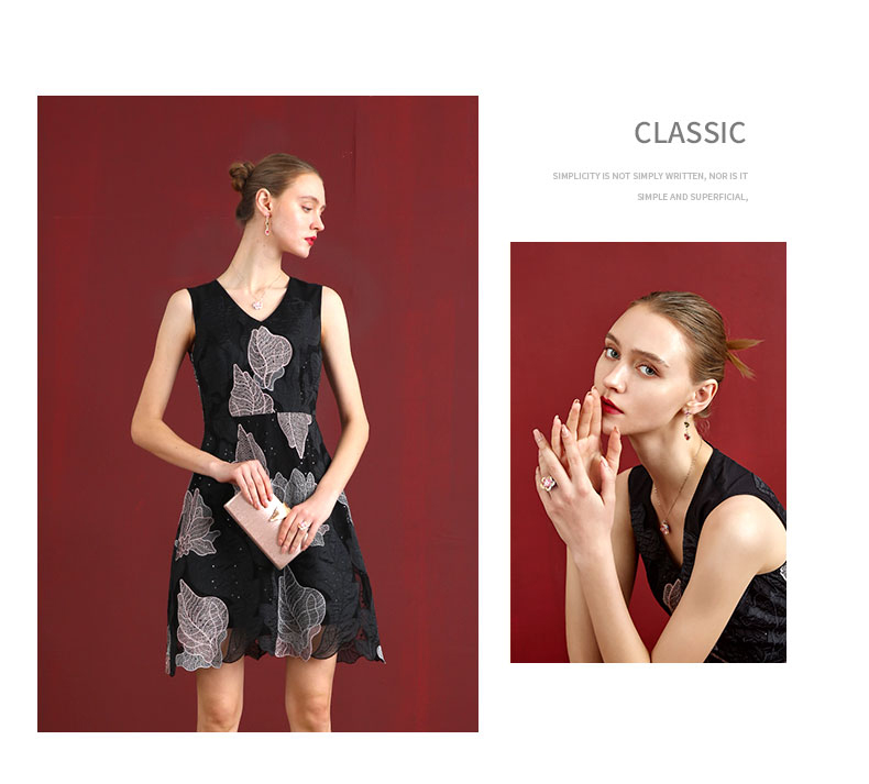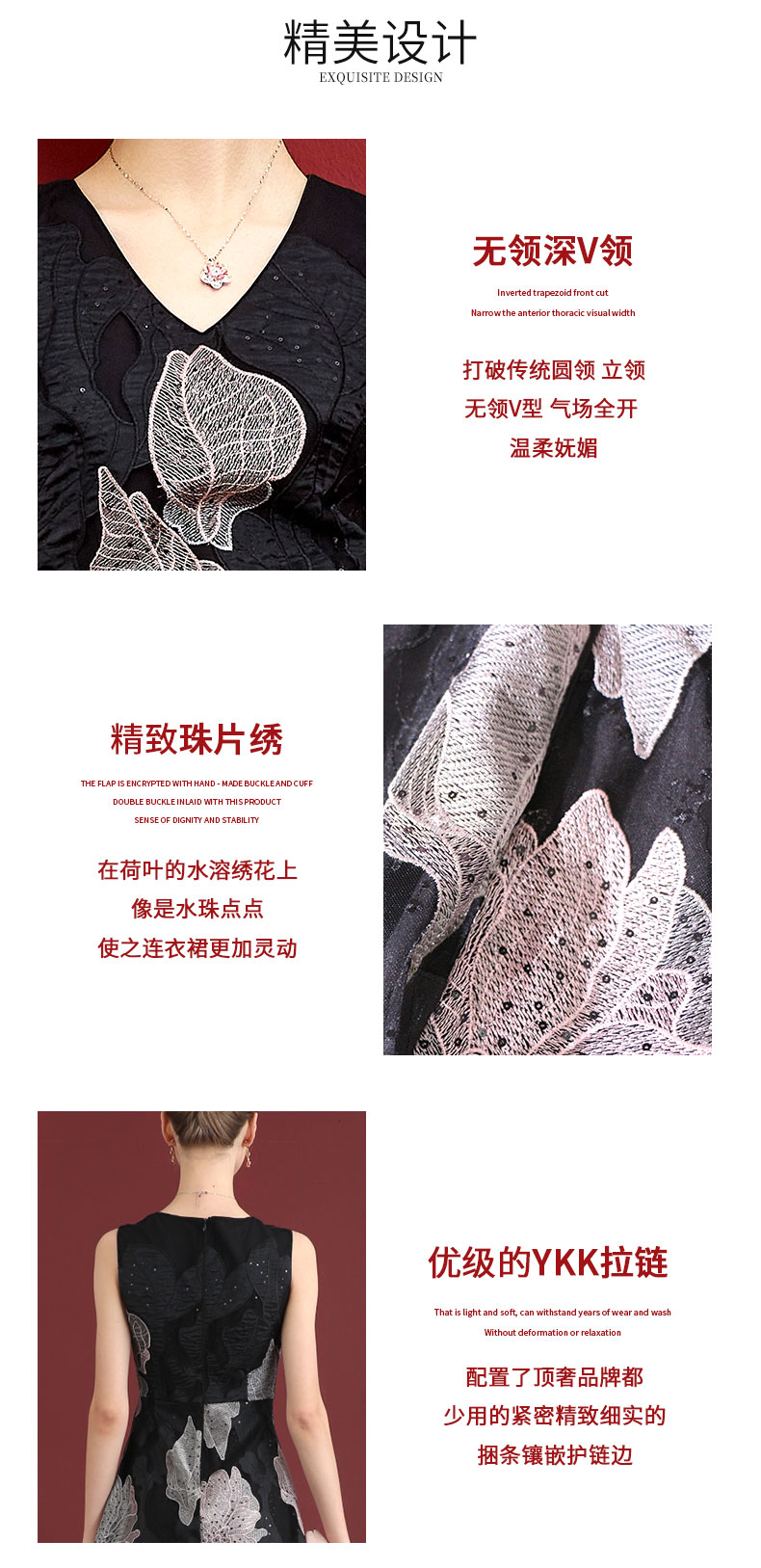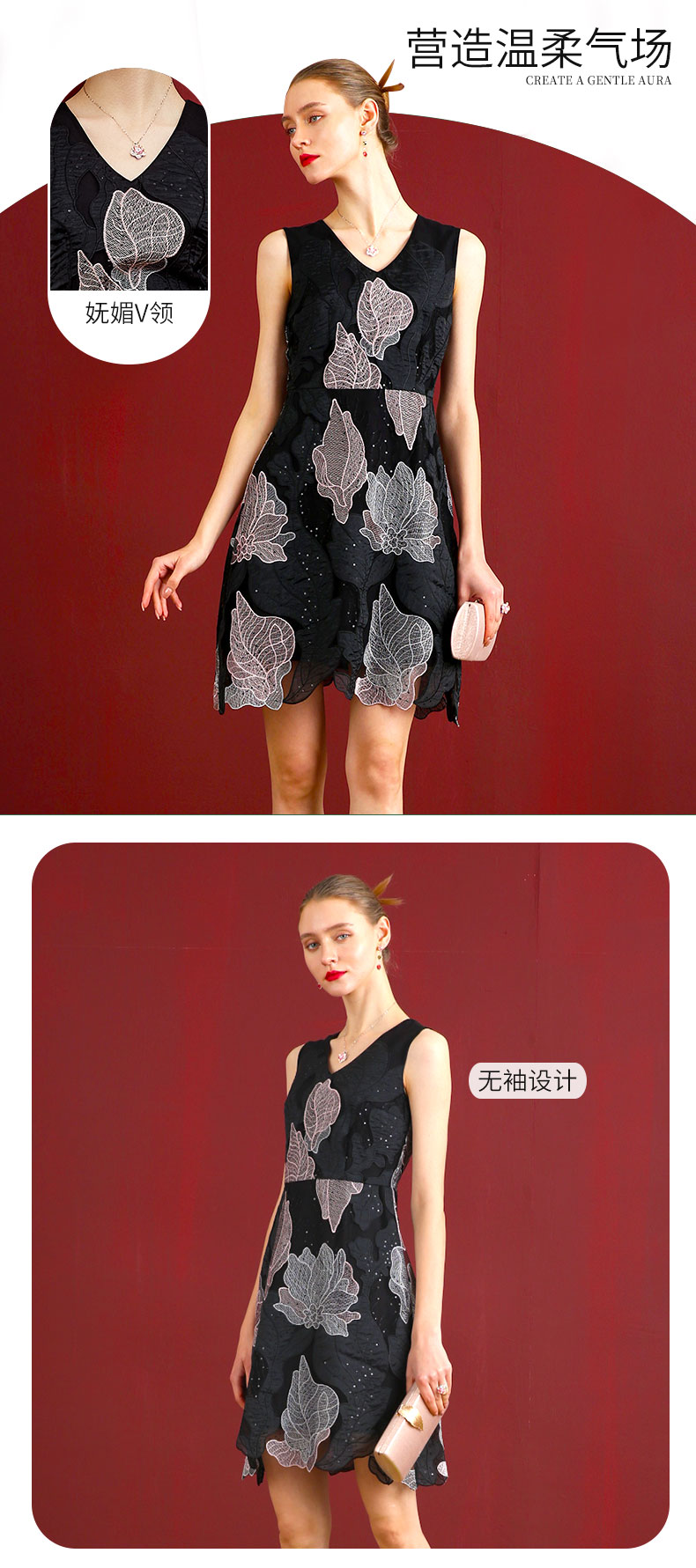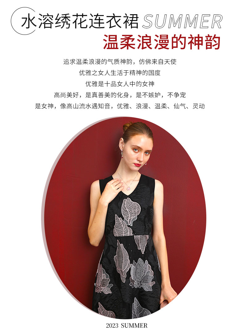 -【伯妮斯茵】贵气V领刺绣连衣裙 1S4077