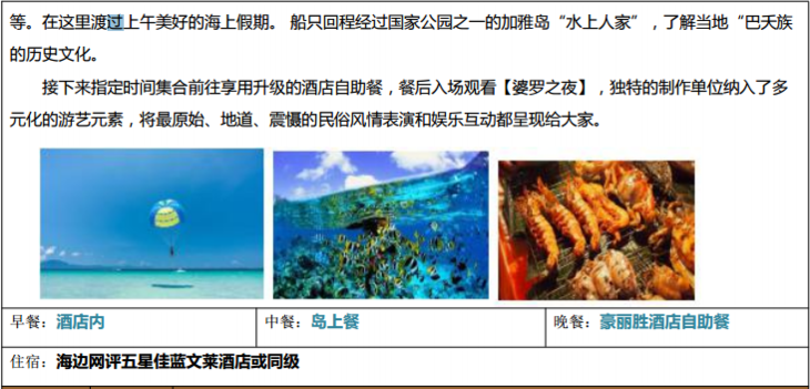 4、行程中用餐(早餐为酒店自助餐,正餐为团队用餐,餐标 50 元);