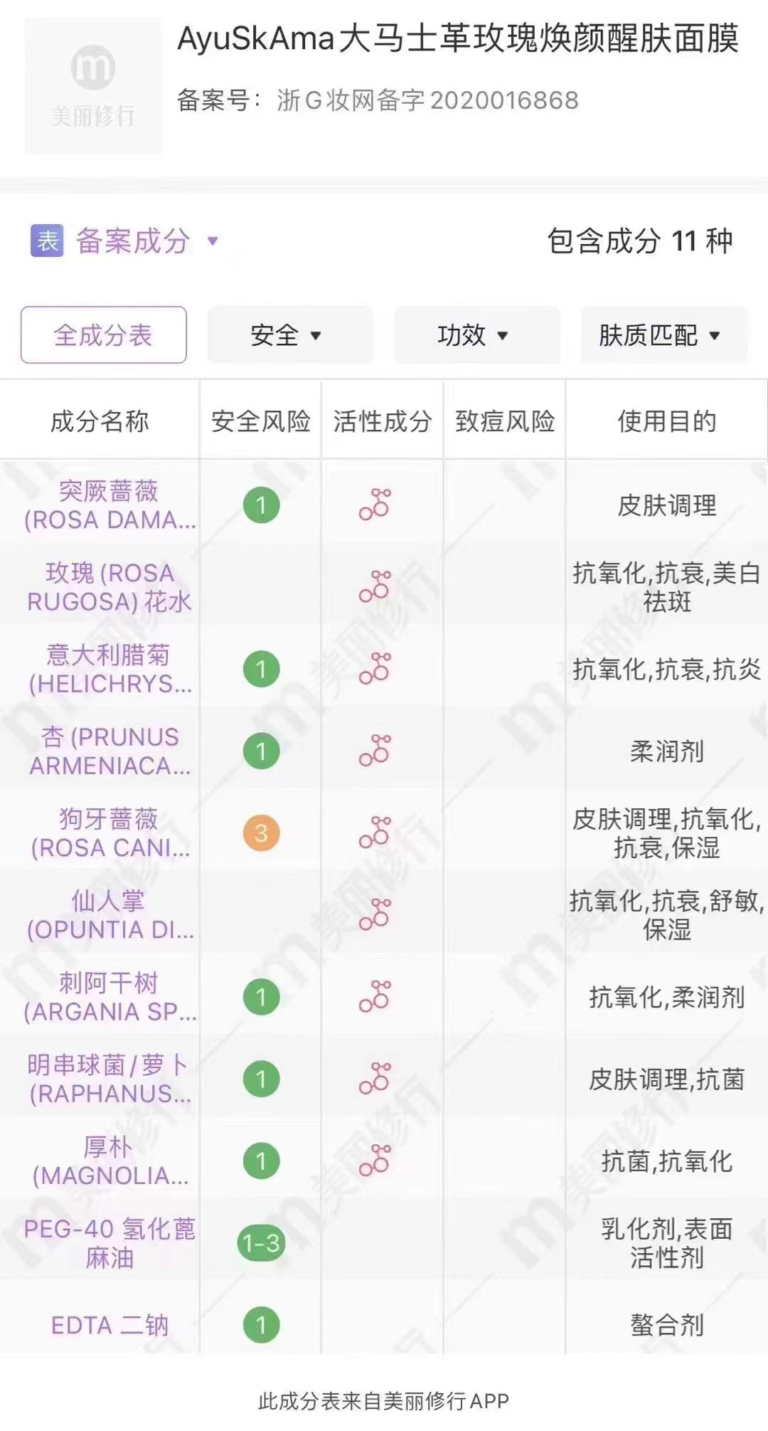 宝贝大名:AyuSkAma 大马士革玫瑰焕颜醒肤面膜