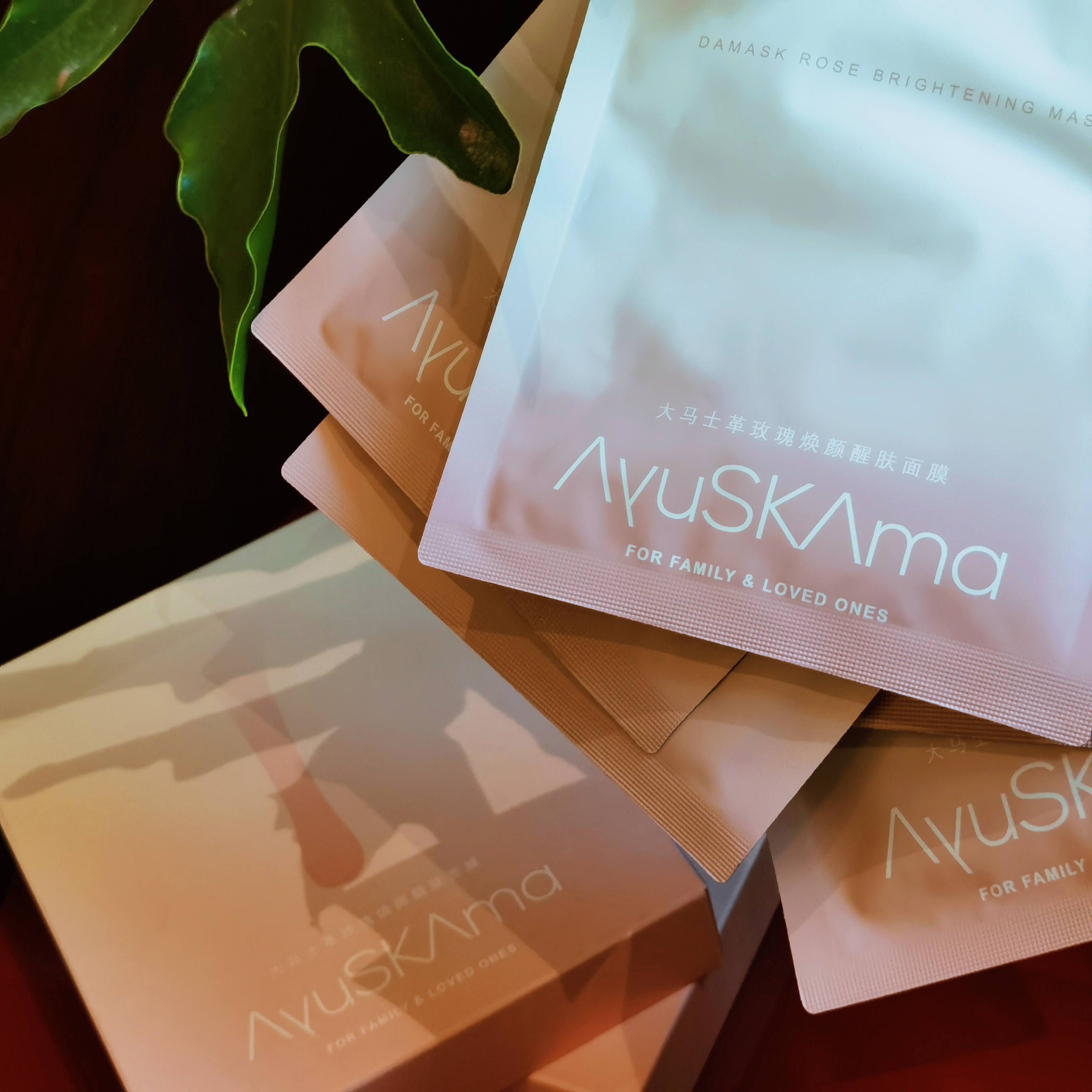 AyuSkAma面膜目前有两款,罗马洋甘菊面膜和大马士革玫瑰焕颜醒肤面膜。洋甘菊主打舒缓镇静和亢敏修护;玫瑰则紧致提亮、补水保湿,适用人群会更广。面膜成分都非常天然,以植物鲜萃精露为主要成分,再复配修复性植物油,不添加额外的水和粘稠剂、香精等化学添加剂,对肌肤来说,吸收也会比市面上普通面膜好很多。