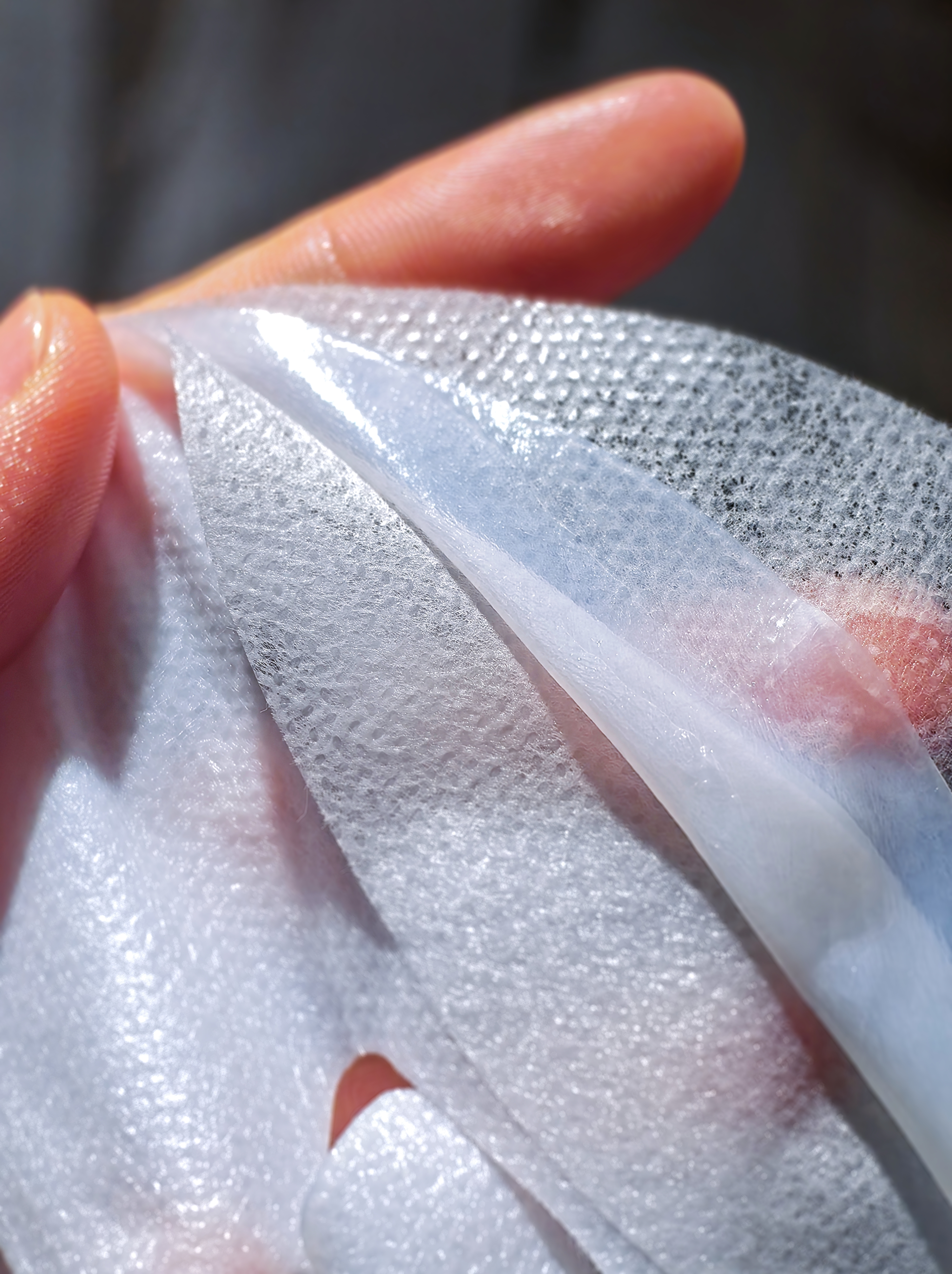 这就是我都敢直接敷的AyuSkAma面膜,它的膜布是由椰汁发酵而成的生物纤维膜,宠爱*名同款。从一定程度上来说,生物纤维膜比我们平时吃的椰果还要天然,所以致敏率非常低,而且它还能直接吸收精华液,敷在脸上不会滴水,贴肤感也会很好,所以虽贵,也要选它!