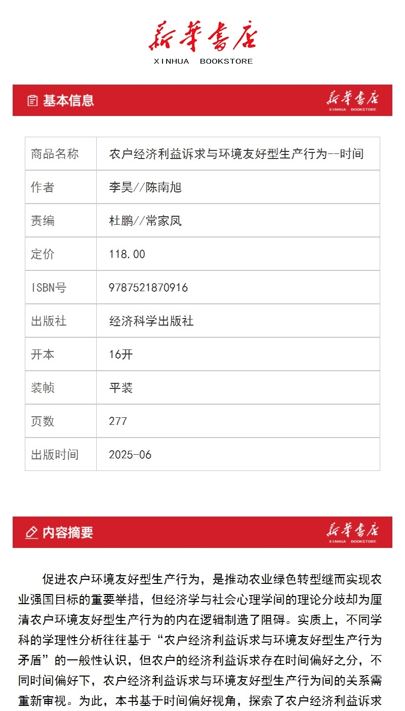 农户经济利益诉求与环境友好型生产行为:时间偏好视角