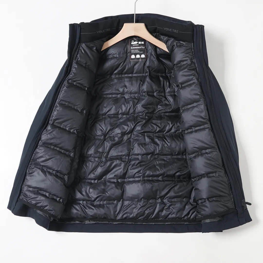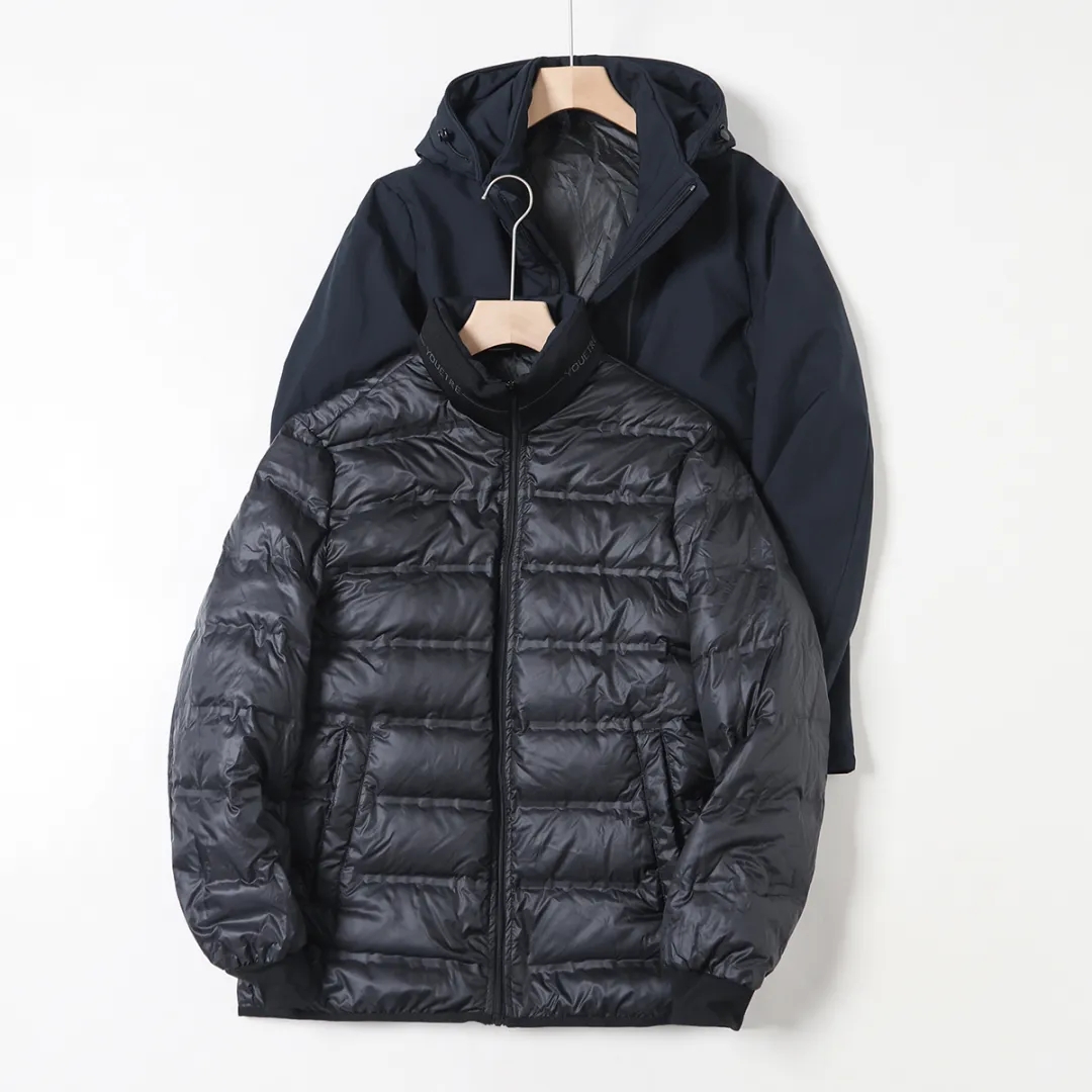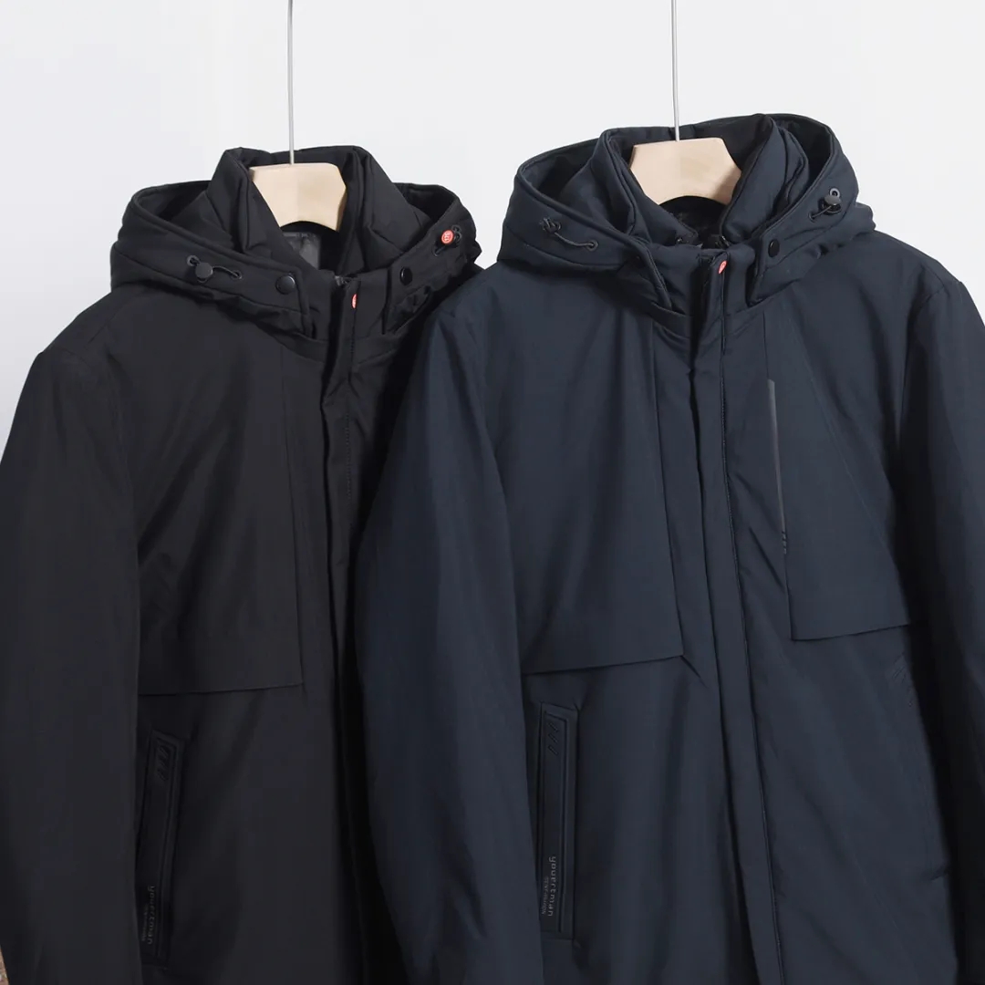 保暖性非常明显差距的是篷松度好的 鸭绒是视觉可见的更篷松,更饱满,更轻盈高品质的90绒篷松度只能达到600+是普通鸭绒所无法达到的客供定制面料,完全防风,密丝合缝风再大都进不来面料是可以防泼水下雪不用担心,风雪无惧全Neng保暖主打轻商务休闲