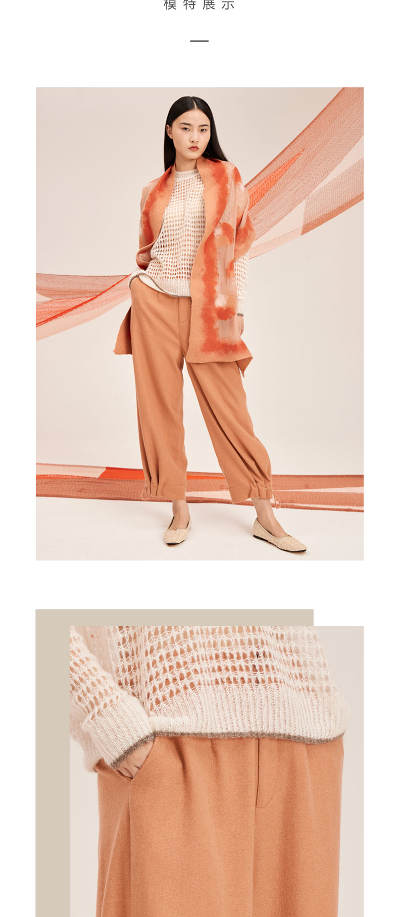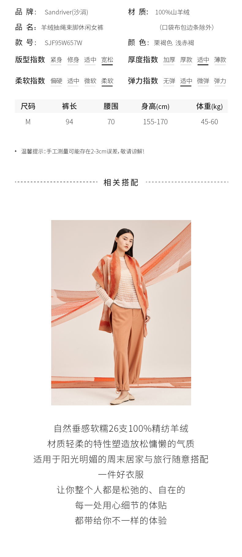 羊绒抽绳束脚休闲女裤SJF95W657W