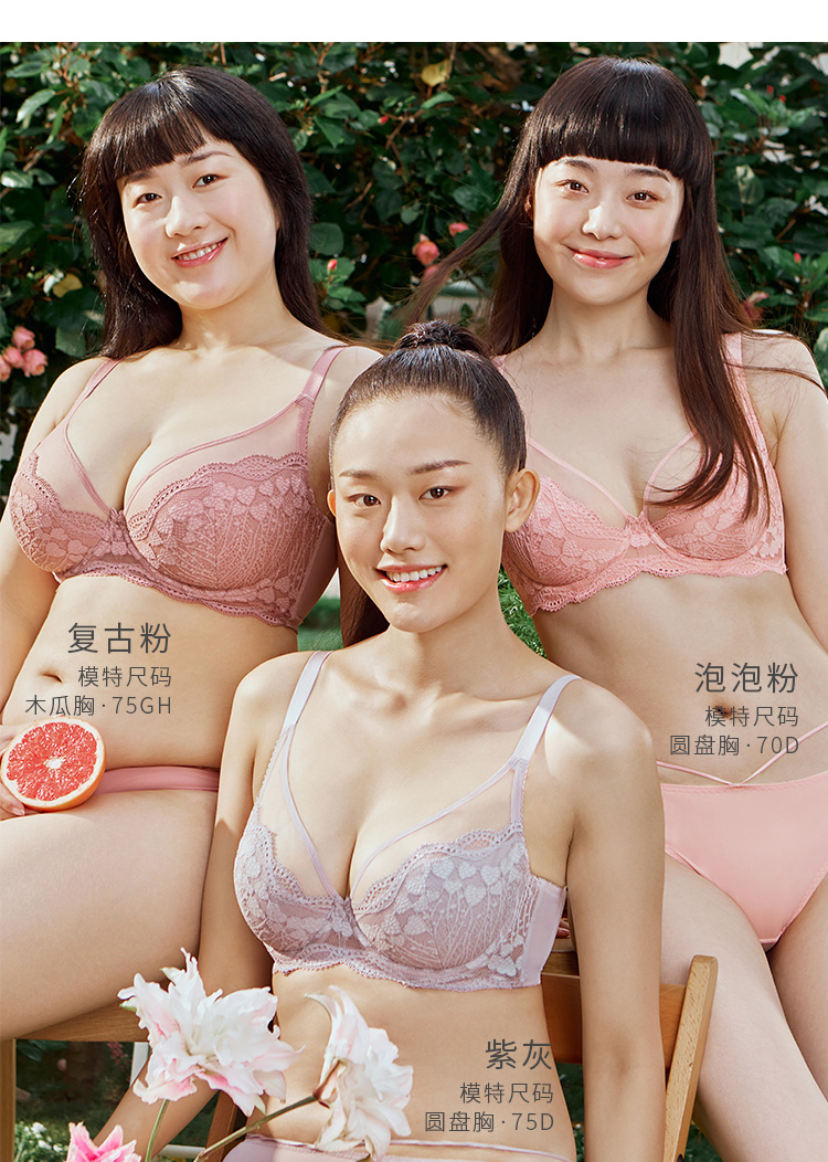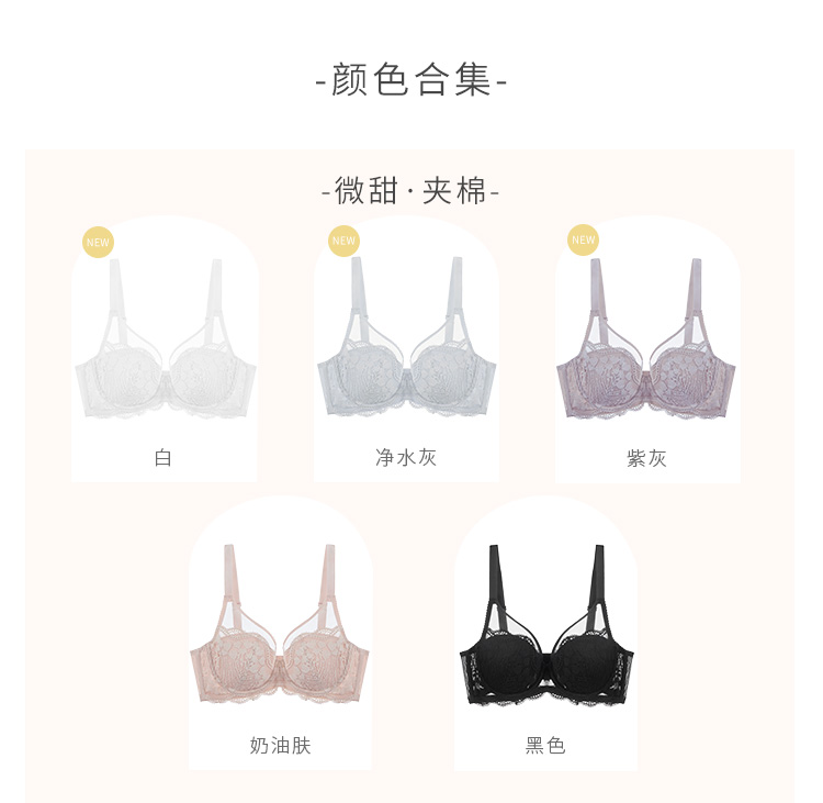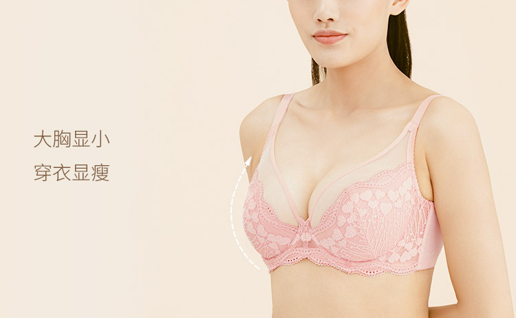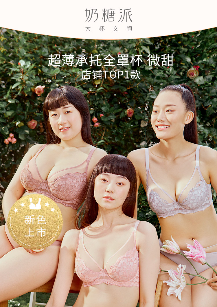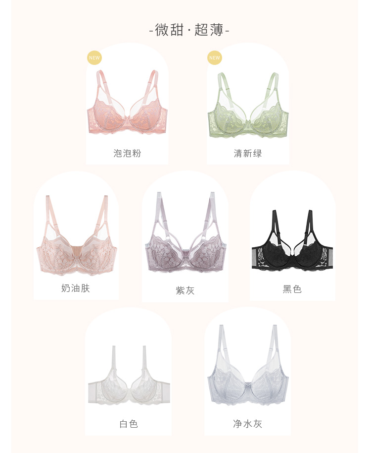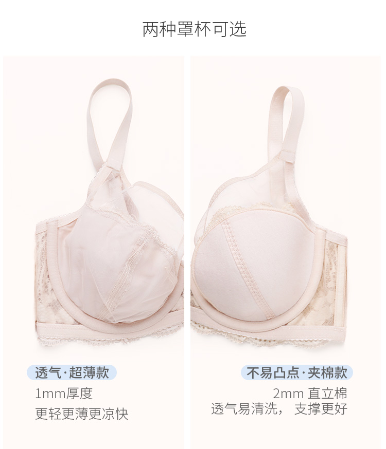 [微甜1.0]大胸显小全罩杯超薄承托性感蕾丝透气侧收大码内衣