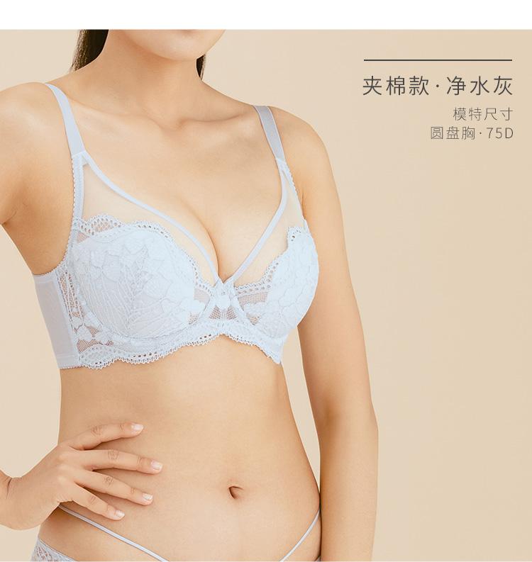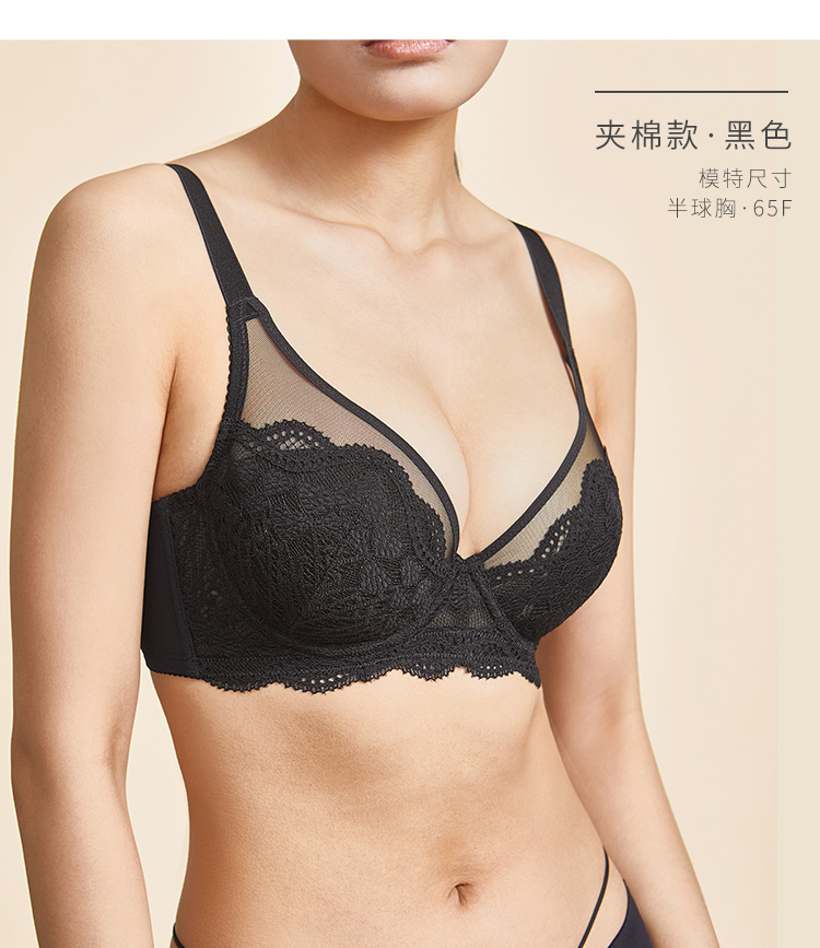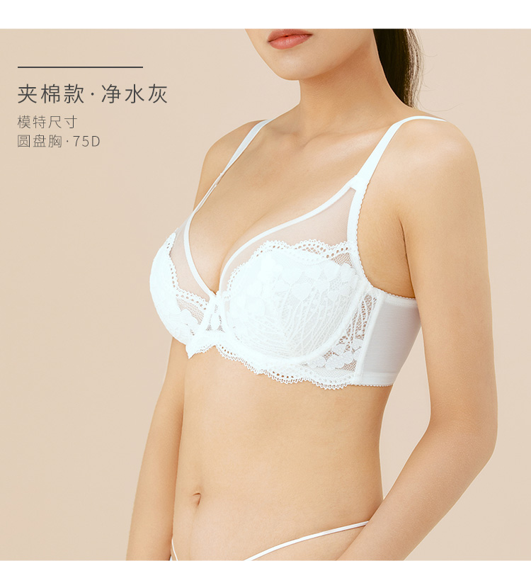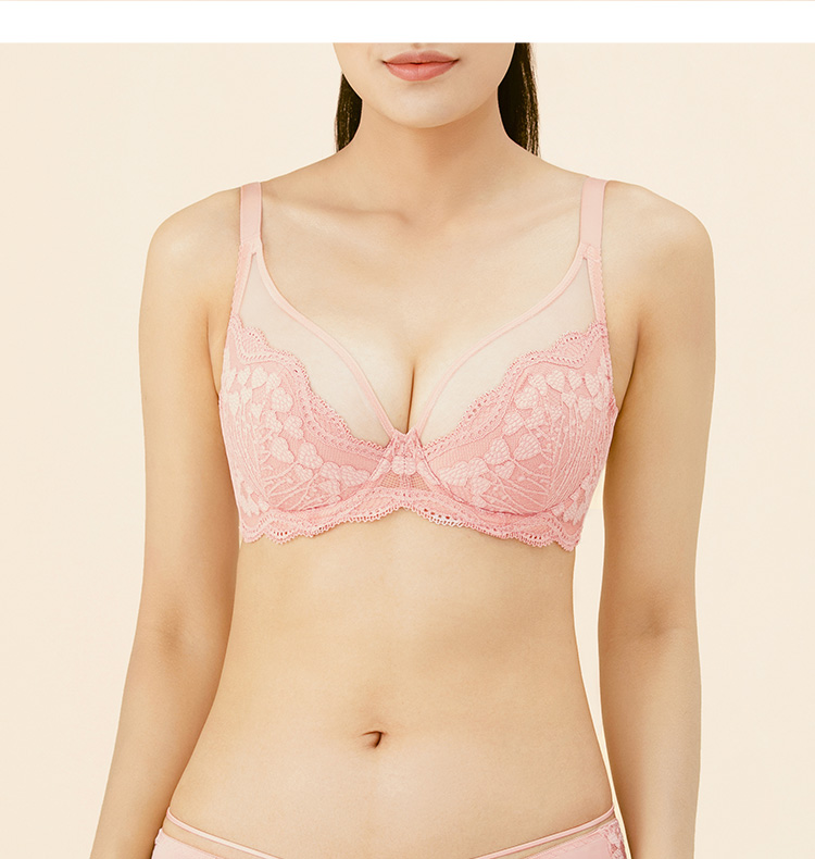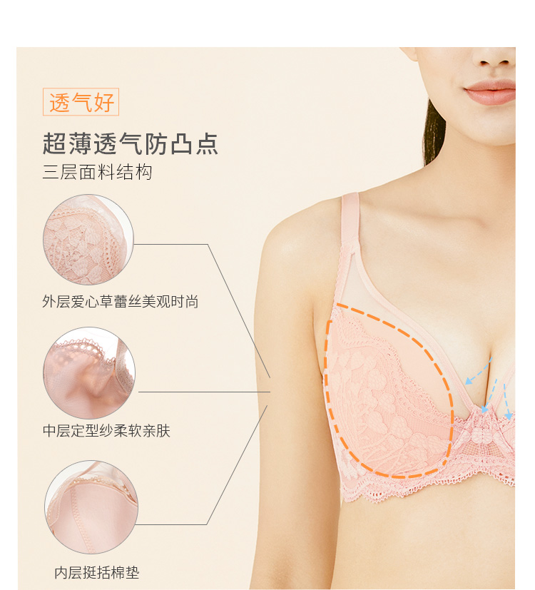[微甜1.0]大胸显小全罩杯超薄承托性感蕾丝透气侧收大码内衣