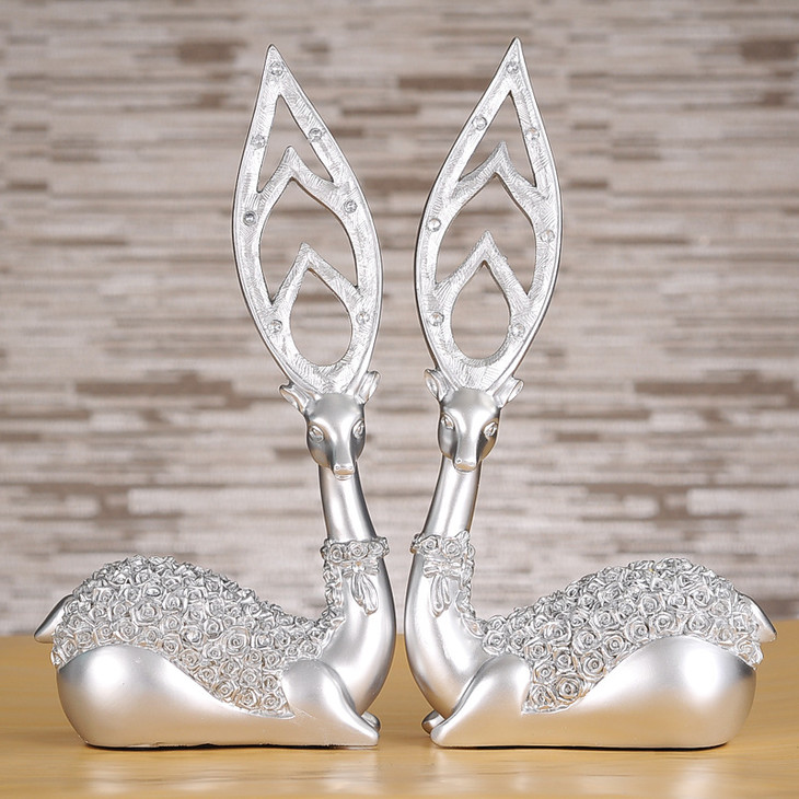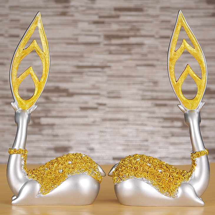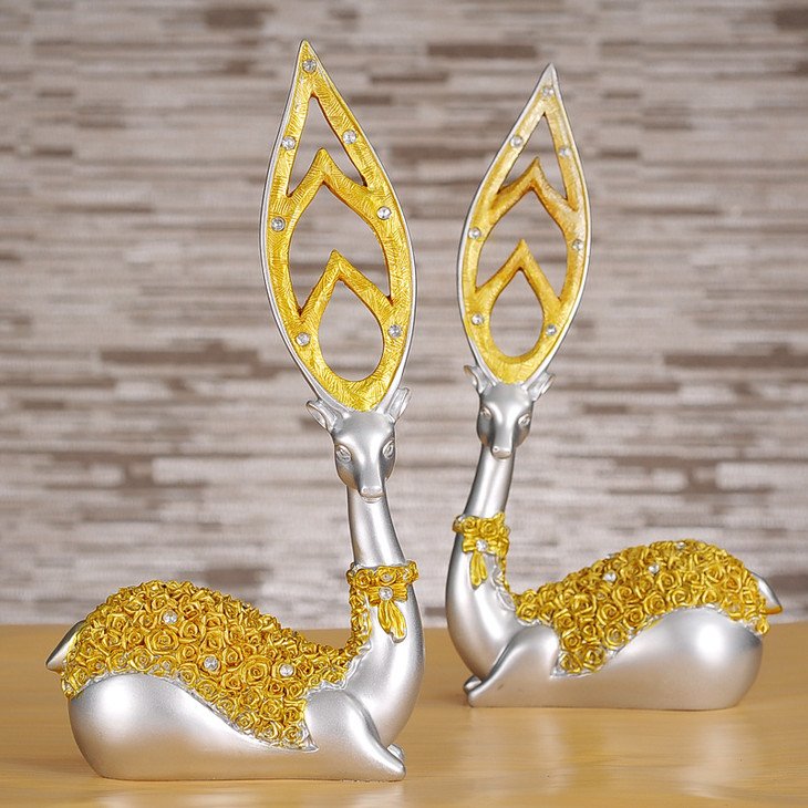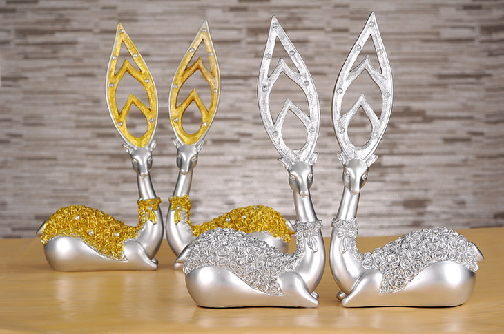 【家居摆件】树脂工艺品创意家居摆件欧式金银客厅梅花鹿摆件
