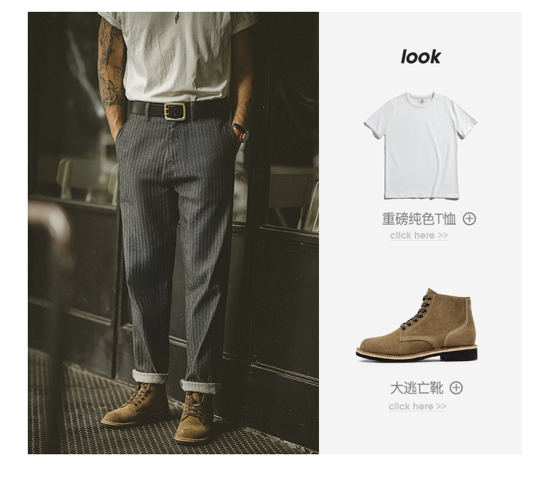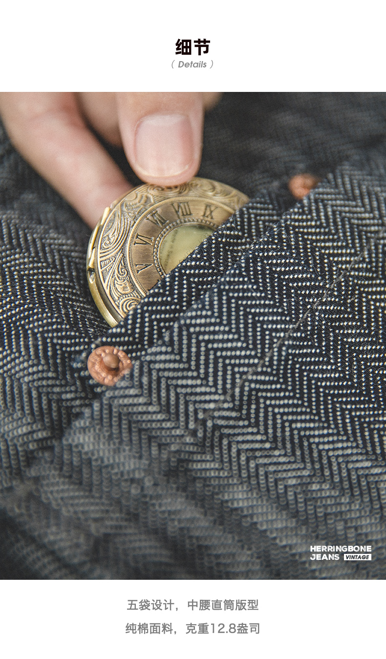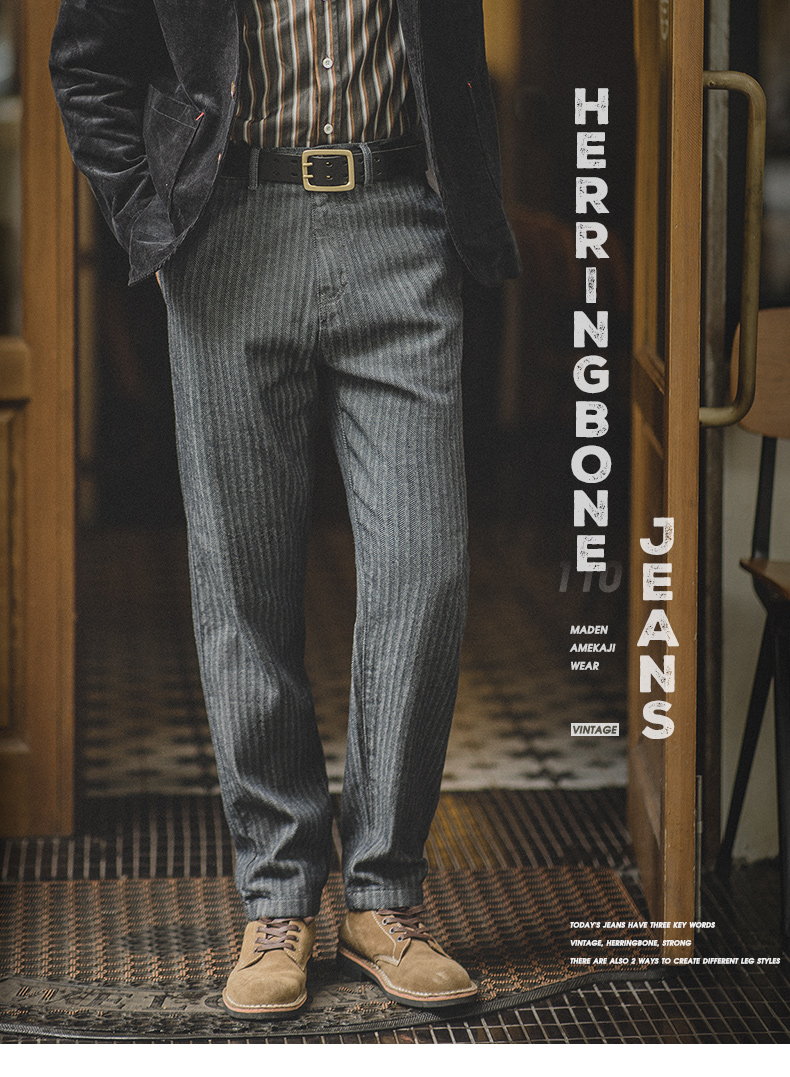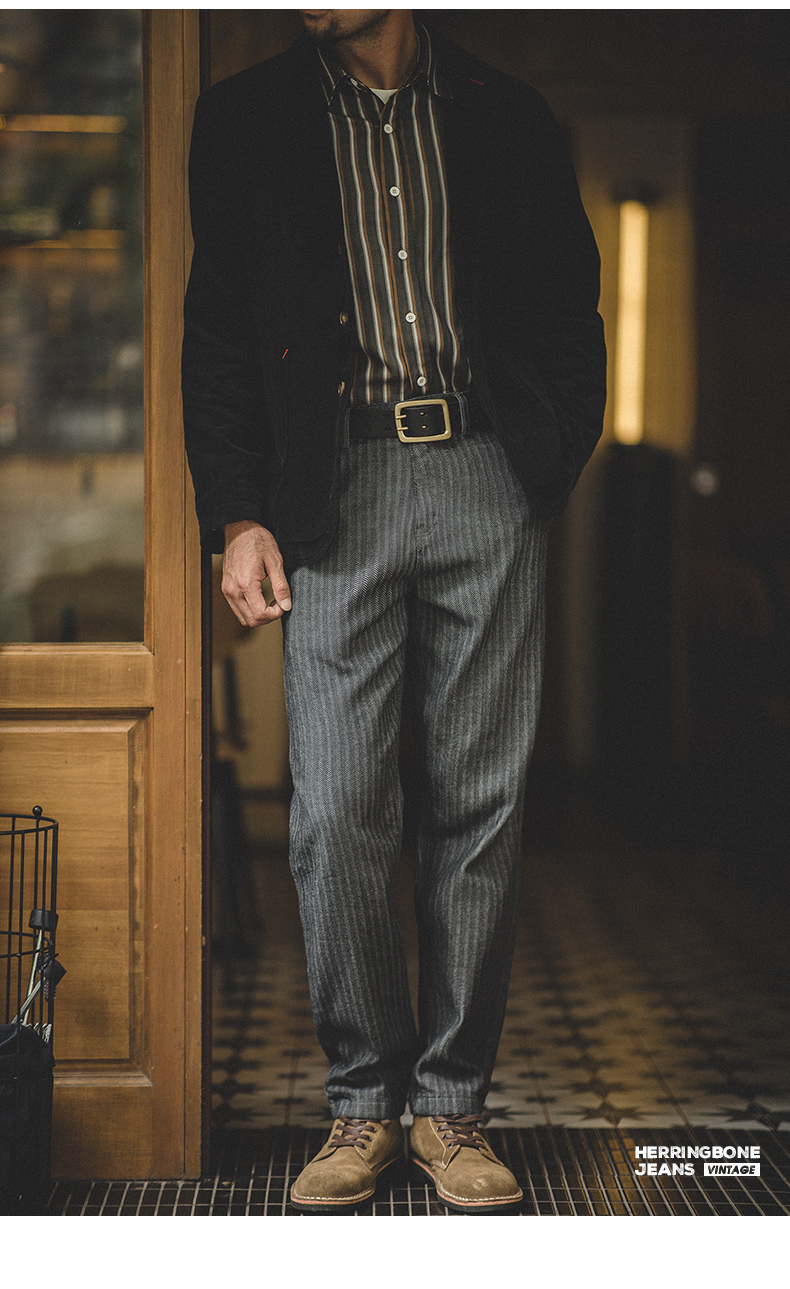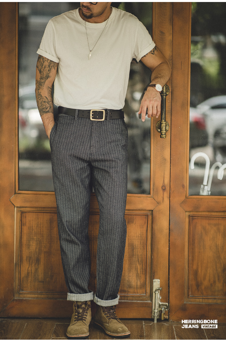 工装优选 美式复古HBT灰色牛仔裤直筒修身阿美咔叽条纹长裤子男秋