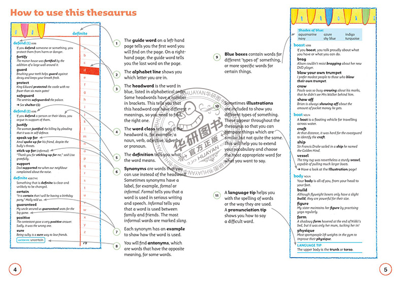 A simple, step-by-step introduction shows children how to get the best out of their thesaurus, while the colour headwords and A-Z bar on every page make it easy to find the right word.