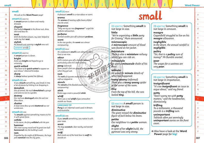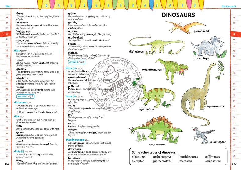 说起做词典的历史,柯林斯(Collins)有很多光环——它拥有目前世界上排名第1的英语语料库Collins Corpus,收词达到45亿之多,而且还在不断扩充;1819年柯林斯首本词典问世;柯林斯曾经与伯明翰大学合作编写了世界上首部基于语料库的英语学习者词典……给大孩子的词典,通常都会分为两种:Dictionary(字典)和Thesaurus(同义词词典)。在英美国家,孩子的Dictionary(字典)和Thesaurus(同义词词典)常常是配套使用的,在写作中尤其有帮助。如果说Dictionary是让你查到含义、了解用法,那么Thesaurus就是增加你的生词量,把泛泛的词汇变成更精准的高级词汇。这样学习词汇,比死记硬背效果好得多,也容易得多。
