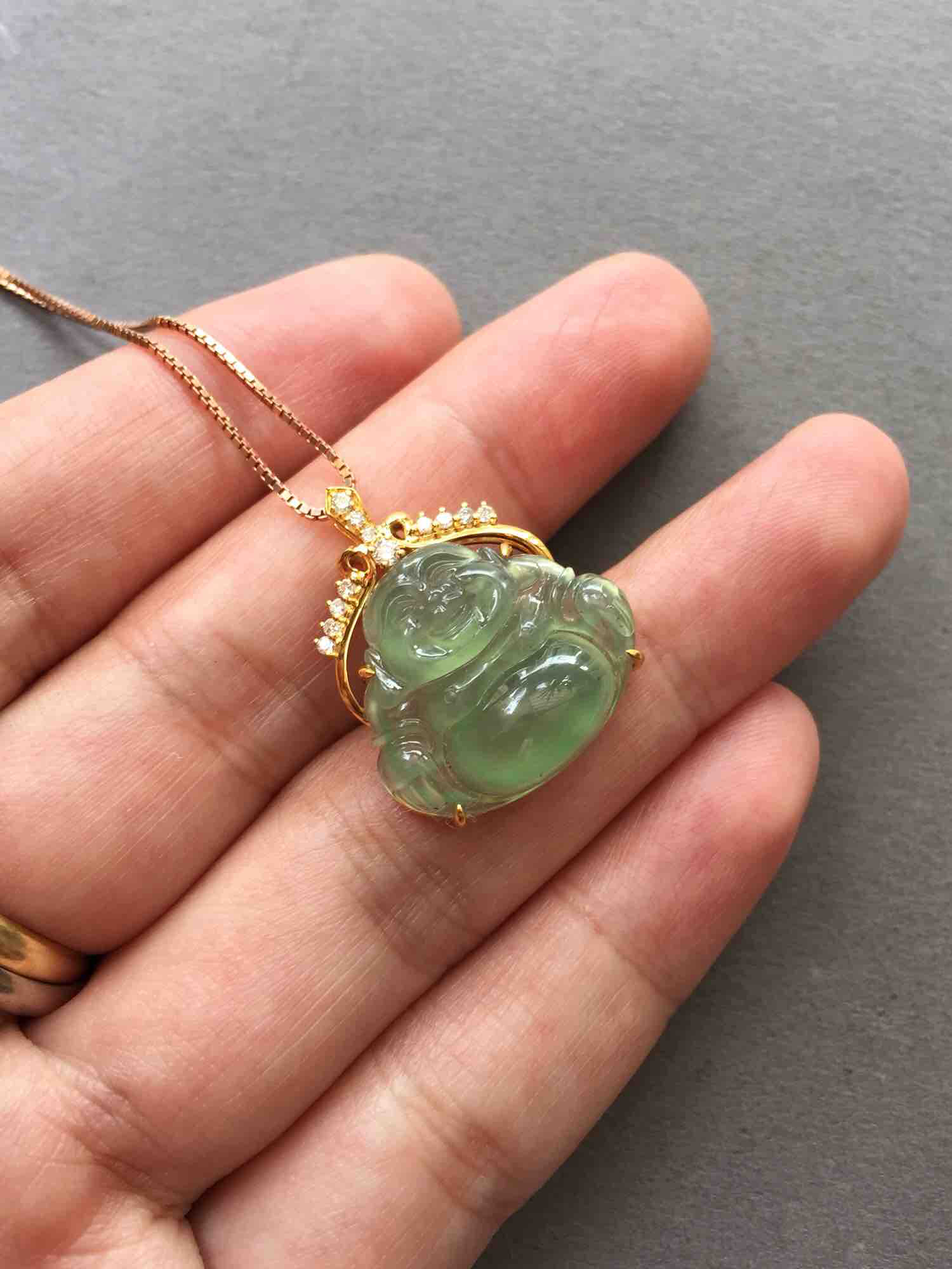 翡翠冰种晴水弥勒佛18k黄金钻石镶嵌