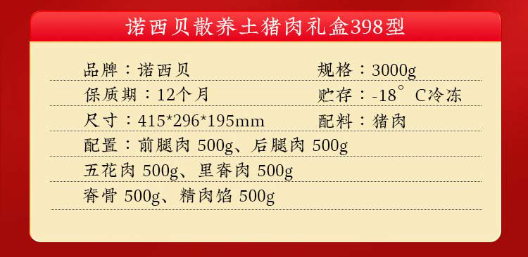 诺西贝散养土猪肉礼盒398型 3000g
