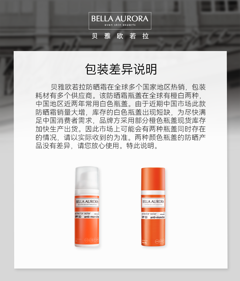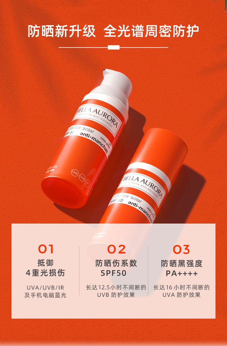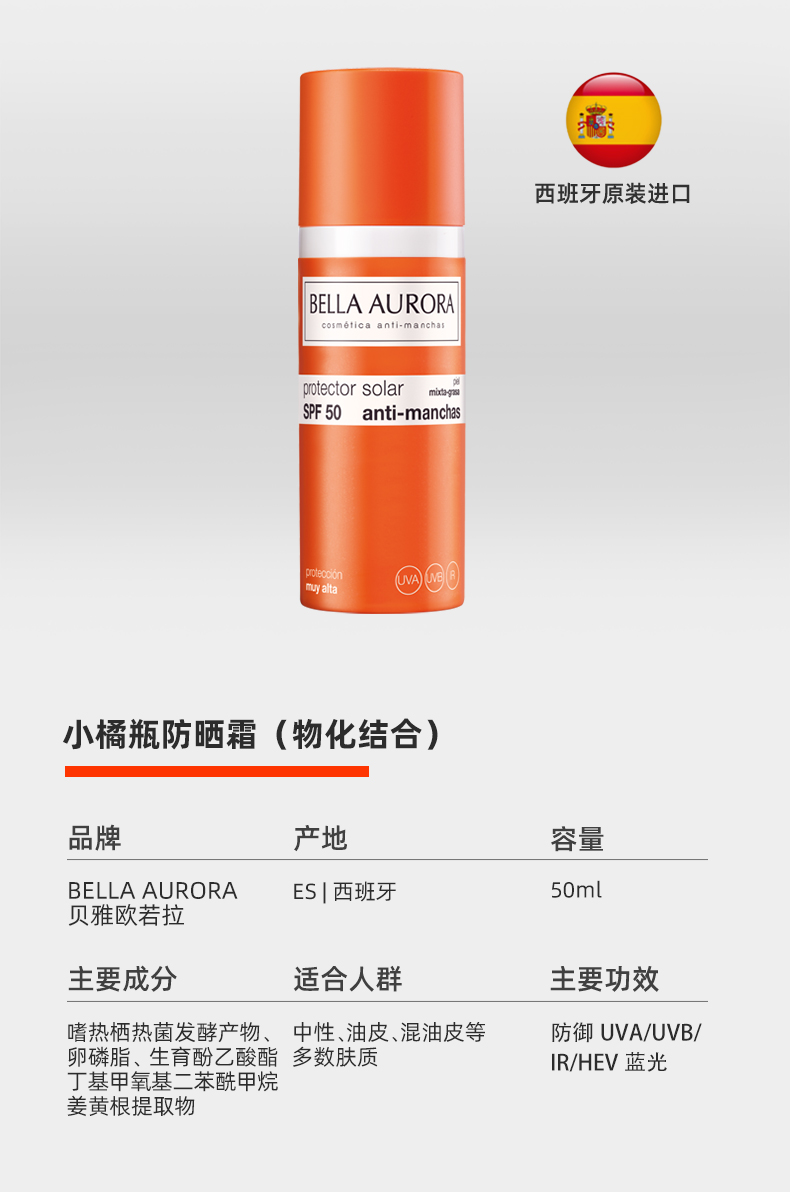 西班牙BellaAurora贝雅欧若拉小橘瓶防晒霜50ml SPF50 PA++++