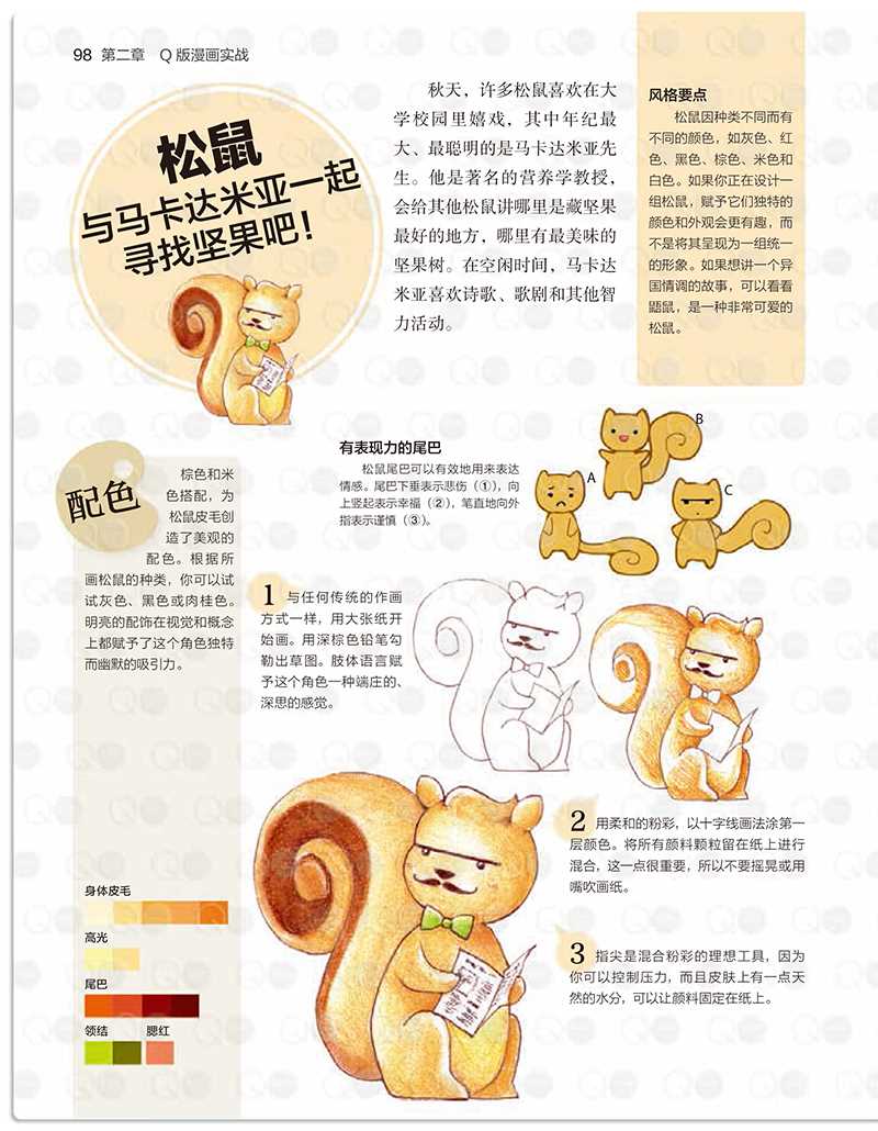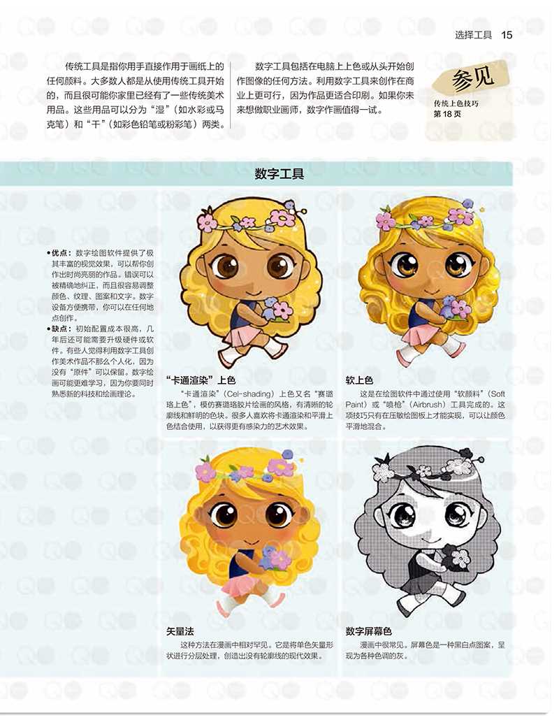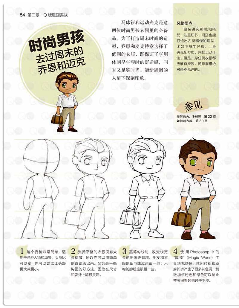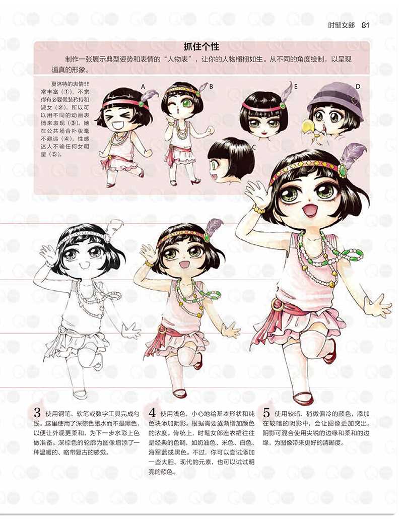 这本书包含了你需要知道的初学Q版漫画的全方位知识,包括学习基本的造型和简单的视觉技巧,如何通过简化和夸大来创作Q版形象,以及如何画出独特的元素,使你的Q版漫画形象更加独特。书中用一步一步的插图向读者展示如何创建Q版角色,配合有趣的形象构思帮助读者创作自己的个人风格。全书除了对线稿、着色技巧、如何画身体、如何画五官和肢体、如何画头发、如何表现情感、如何画衣服等基础内容进行了讲解外,还创造了40多个吸引人的Q版形象,包括人物和动物,每个案例都有一步一步的绘制方法,读者可以参照临摹,即使零基础也能一步一步学会。 ?
