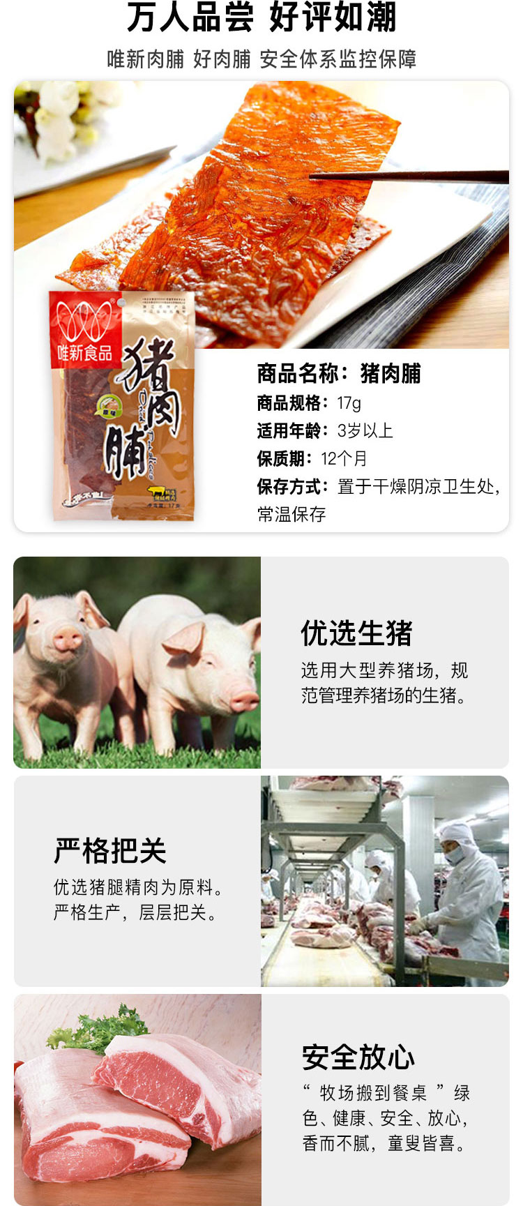 【休闲食品】唯新 17g原味猪肉脯*6袋装