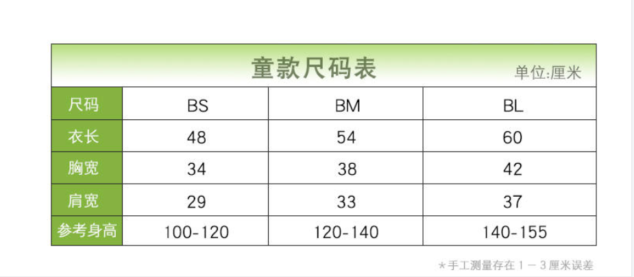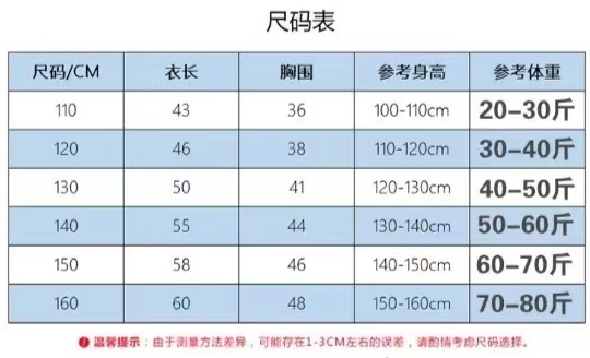 短袖尺码表