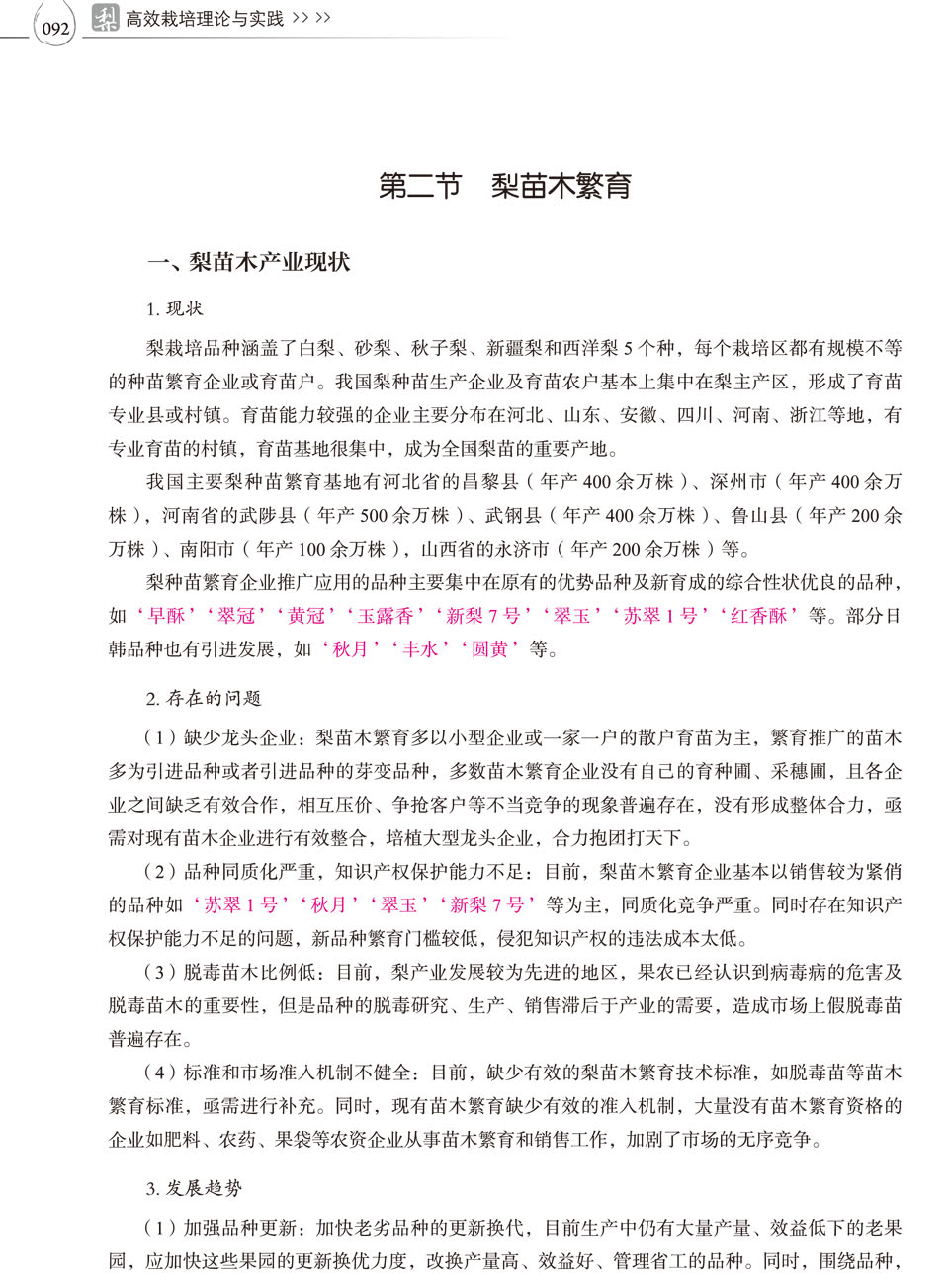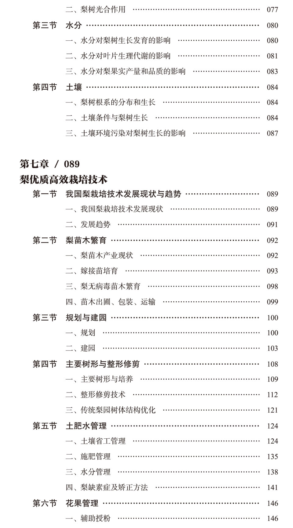 本书遵循理论和实践相结合的原则,内容涵盖梨栽培历史与现状、梨优势产区布局与区域划分、梨品种、梨生物学特性、梨优质高效栽培技术、梨园病虫鸟害防控、梨园管理机械装备与应用、梨园防灾减灾、梨采后增值技术、梨文化及观赏休闲产业等方面,既有栽培理论探索,又有栽培实践技术研究。该书为解决梨产业中的问题拓展了思路,为提高我国梨果产量和品质奠定了基础,将有力促进我国梨产业健康可持续发展。
