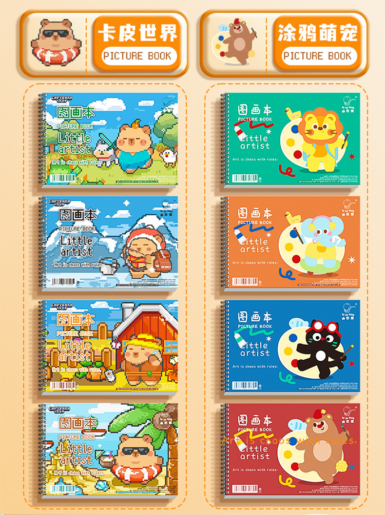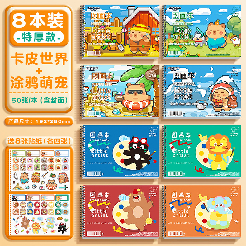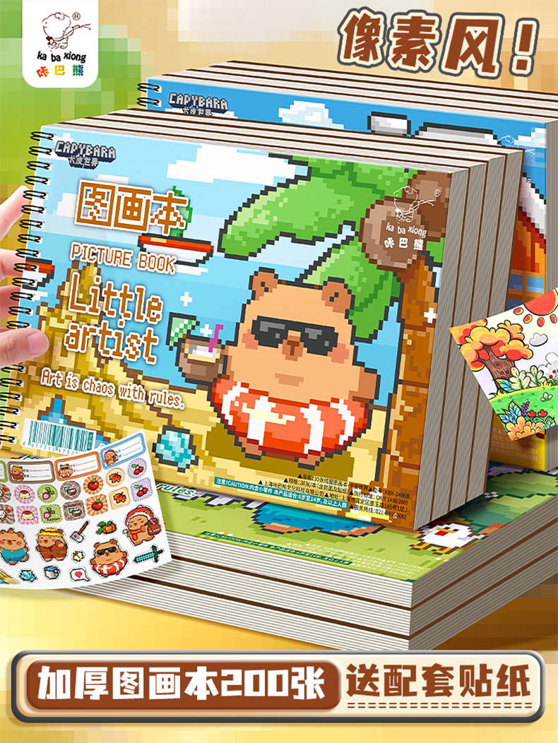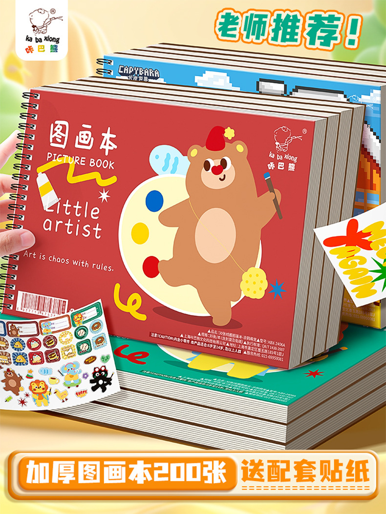 【 速抢❗️9.9秒50张🔥咔巴熊a4图画本】小学生线圈绘画本,加厚图画本200张「送配套贴纸」加厚纸张不透色,开学季卡通涂色美术本素描本L