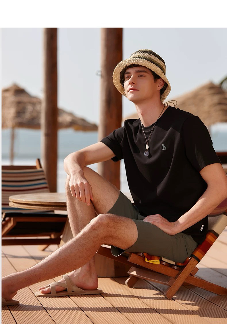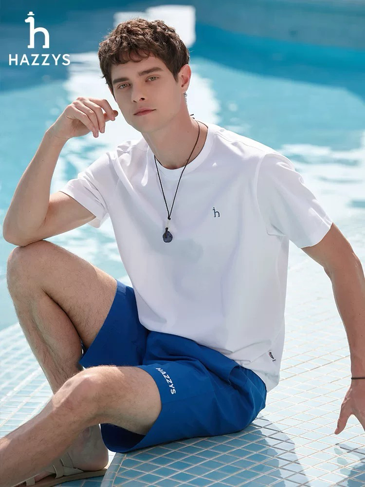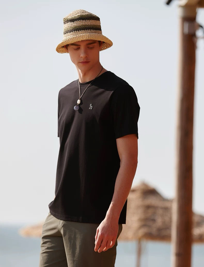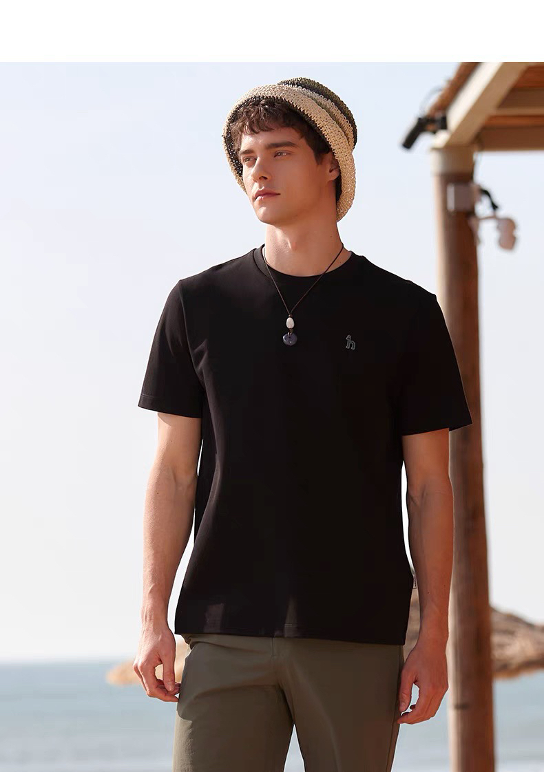哈狗 小logo 夏季男士纯色圆领T恤