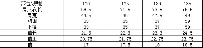 尺码:170、175、180、185