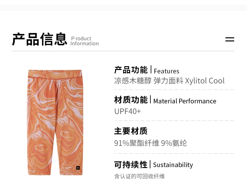 【断码三折】REIMA儿童春夏防晒防紫外线时尚沙滩中长裤 5200188B