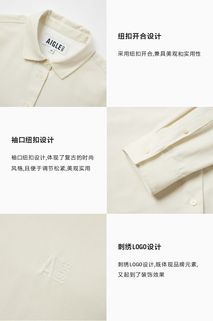 【春上新】【9.5折】2楼AIGLE艾高衬衫上衣2024女士户外休闲简约时尚纯色长袖 吊牌价1200现价1140
