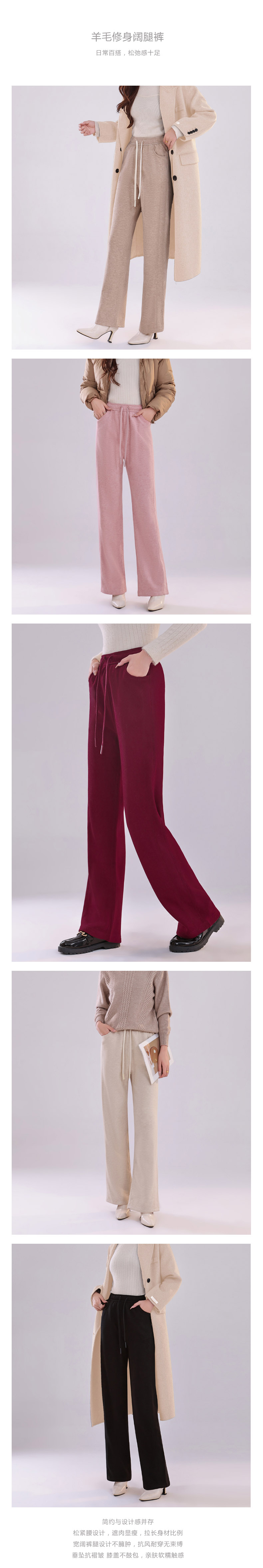 Y4Q10S1011【钰米】新款羊毛修身阔腿裤