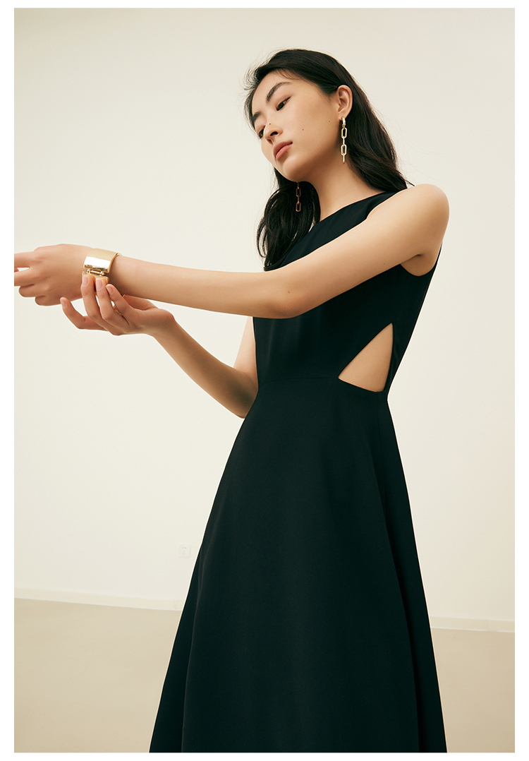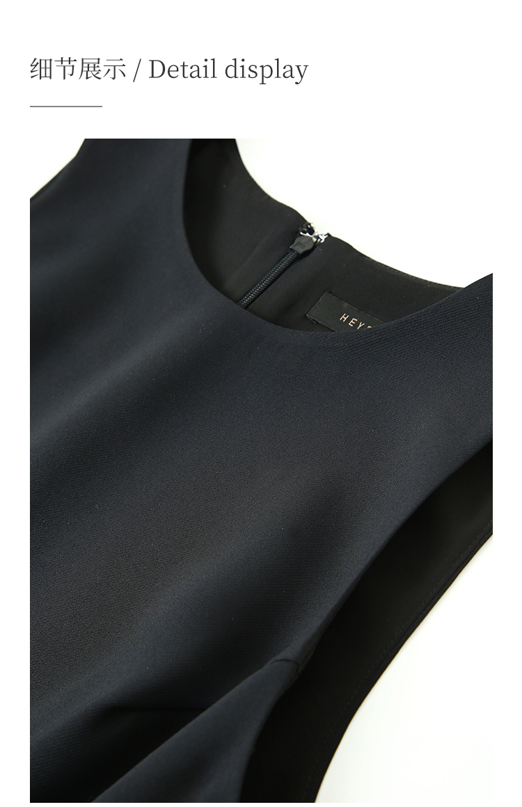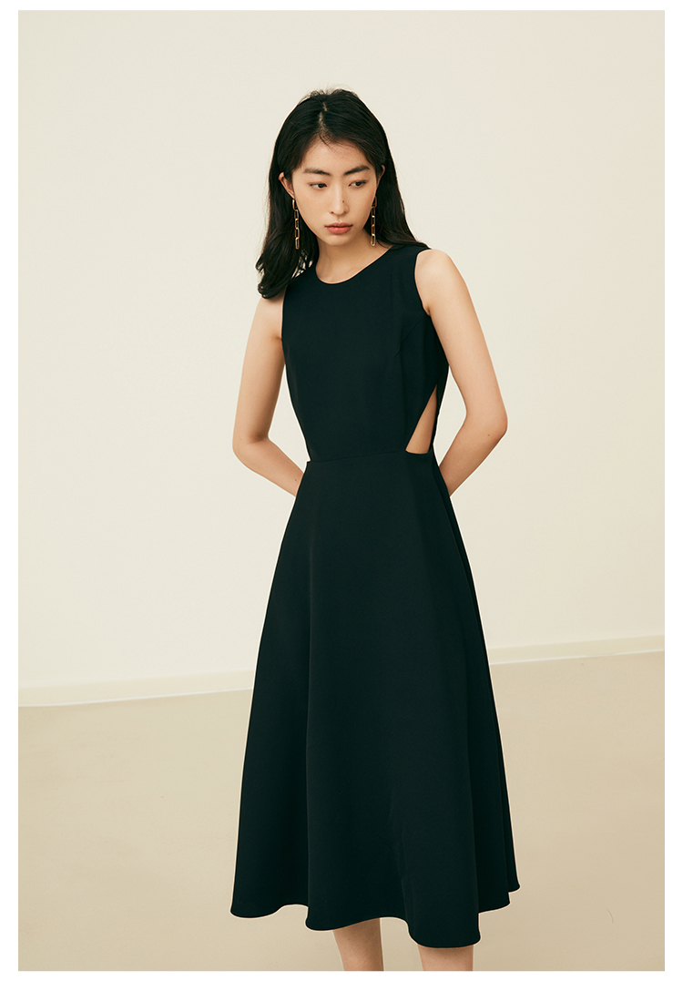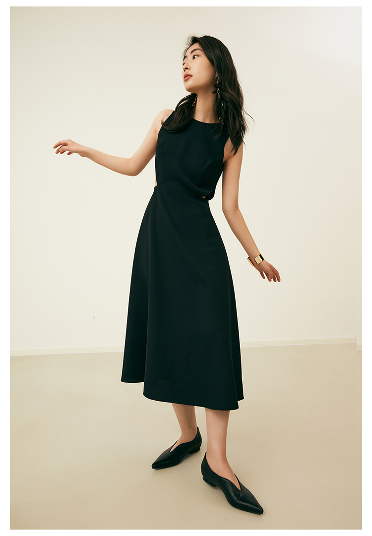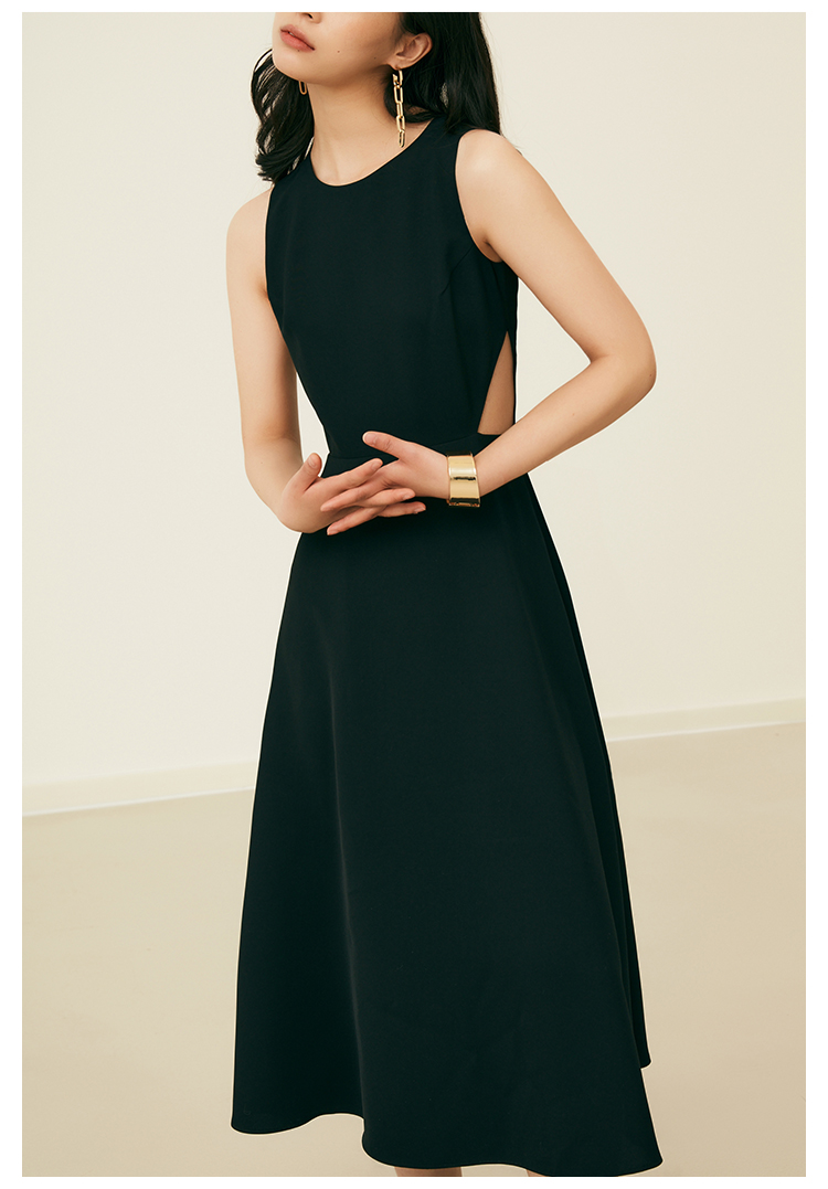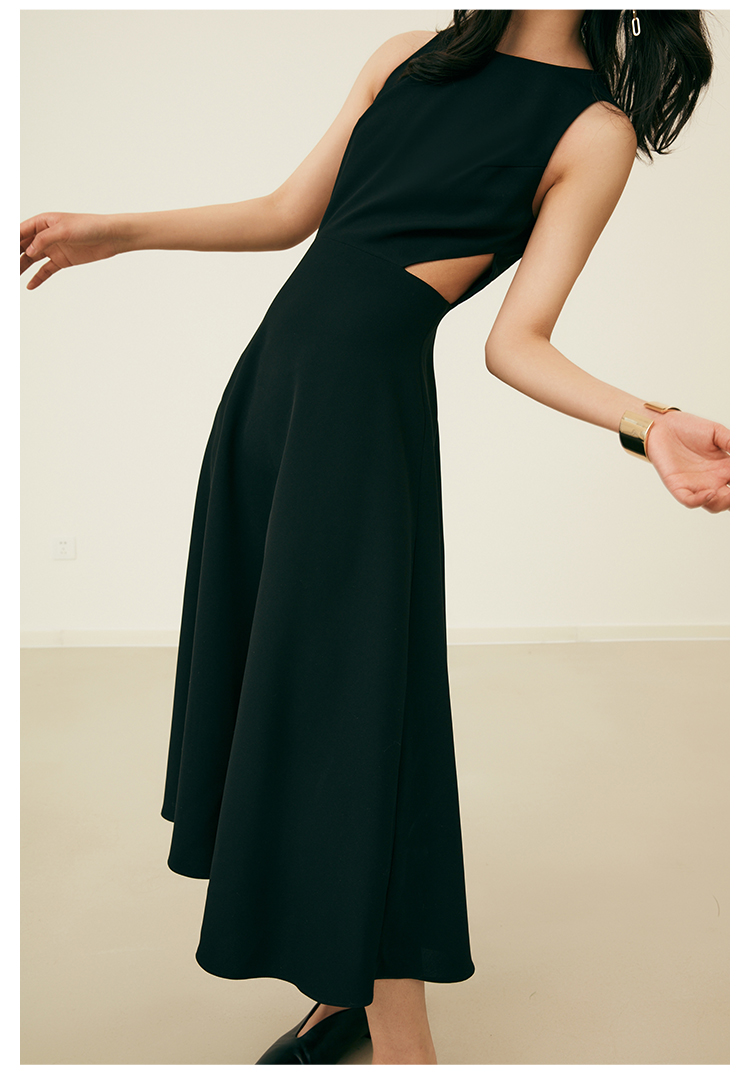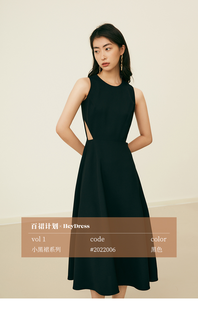 HeyDress法式复古黑色连衣裙女夏季收腰镂空设计感小黑裙大摆裙子