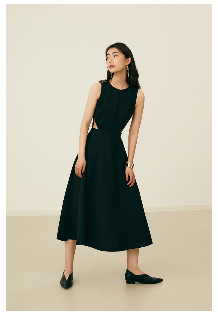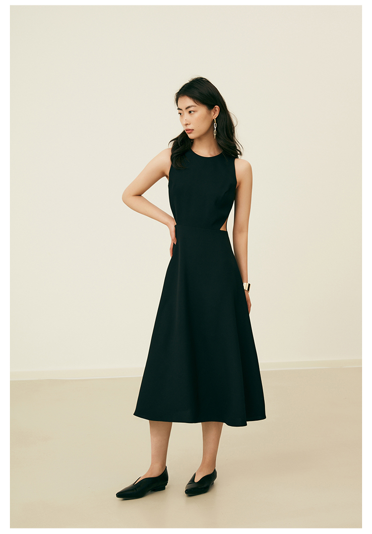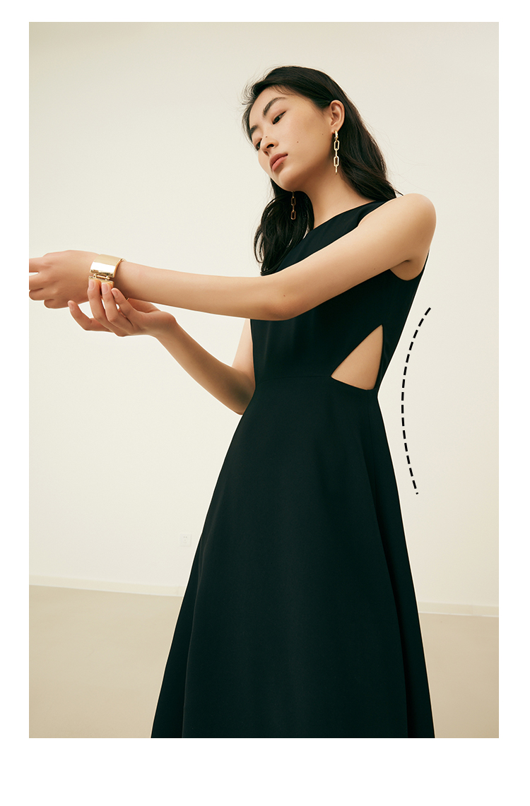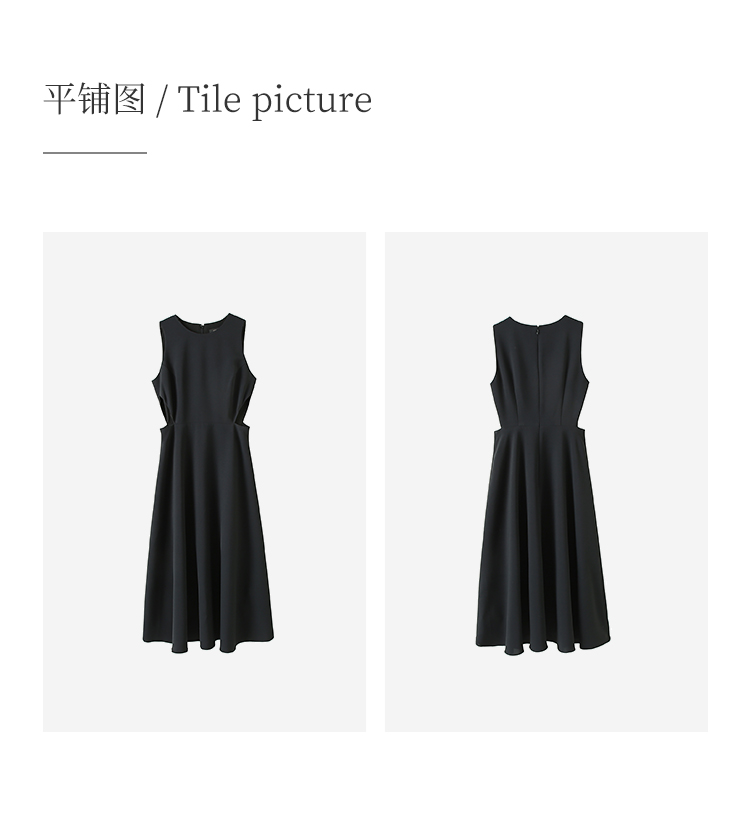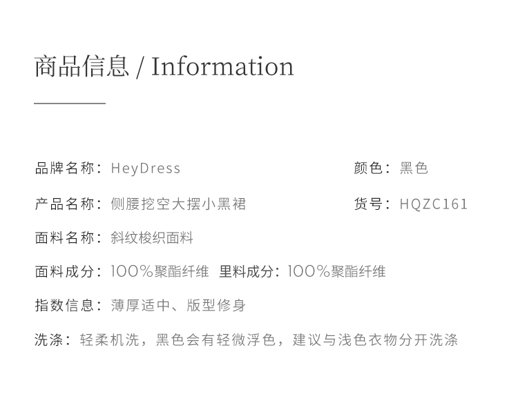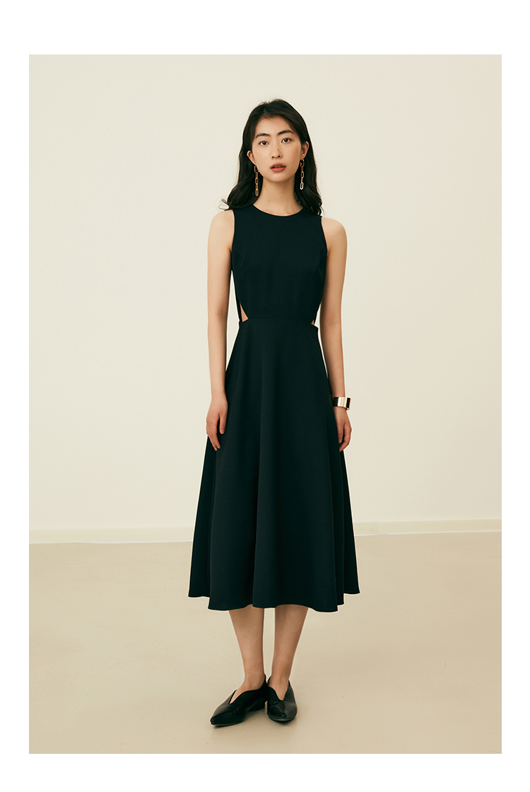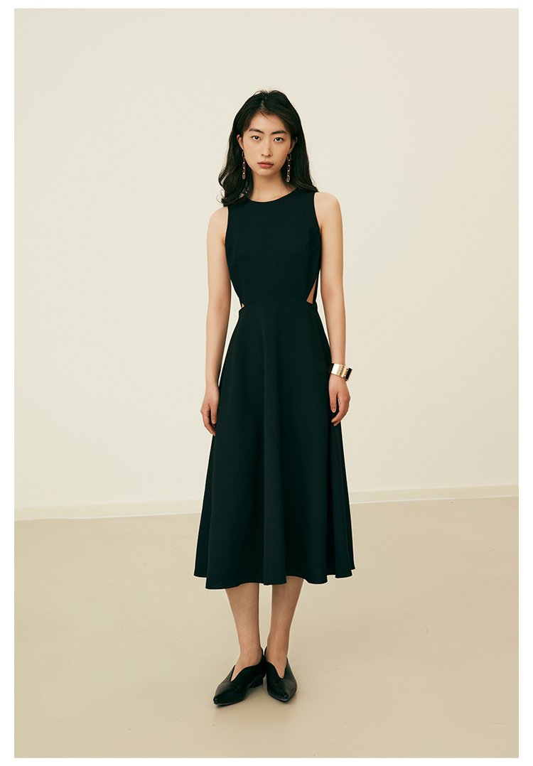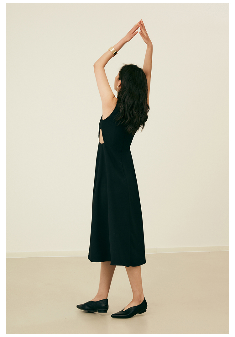 HeyDress法式复古黑色连衣裙女夏季收腰镂空设计感小黑裙大摆裙子