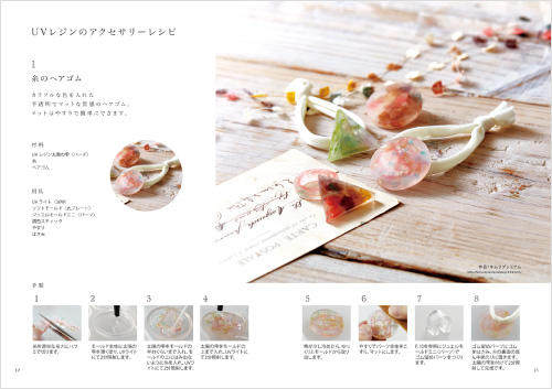 全彩色39页。用日文书写,但许多图片都是一步一步的说明,可能对读者很有帮助,对初学者也很容易理解。这本书是由Padico发行的,你可以在这本书中使用Padico的产品,UV树脂“从阳光中滴下”,宝石色的“房子-无shizuku”和柔软的模具。这本书的作品是由5位著名的树脂艺术家、Kimura的高级、SiS、Kimura、南瓜和miG的作品。这本书里有15个附件。一个例子是真正的玫瑰和海蛇的配件。这些花被涂上了UV树脂,并为戒指、项链和耳环等各种配件安排好了。它还介绍了猫脸造型的发饰。