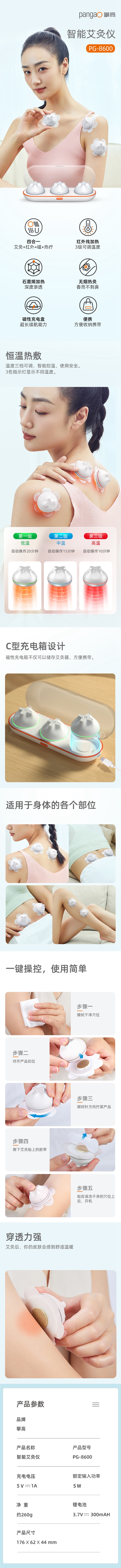 攀高智能艾灸仪PG-8600白色便携式家用无烟艾灸