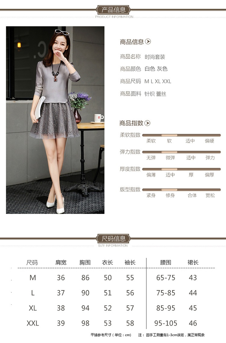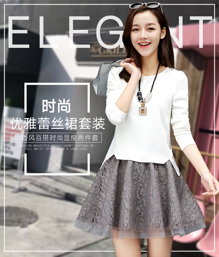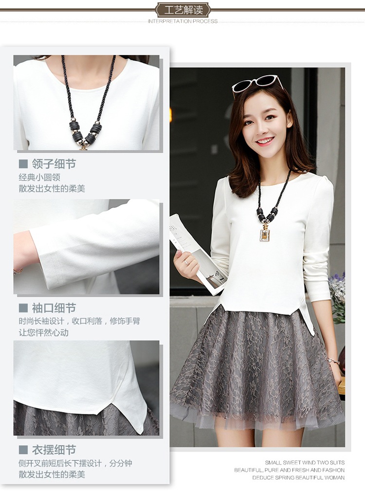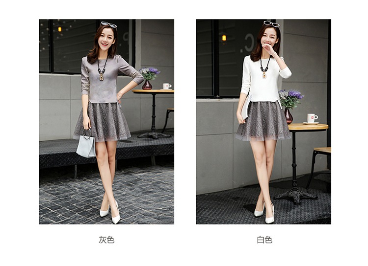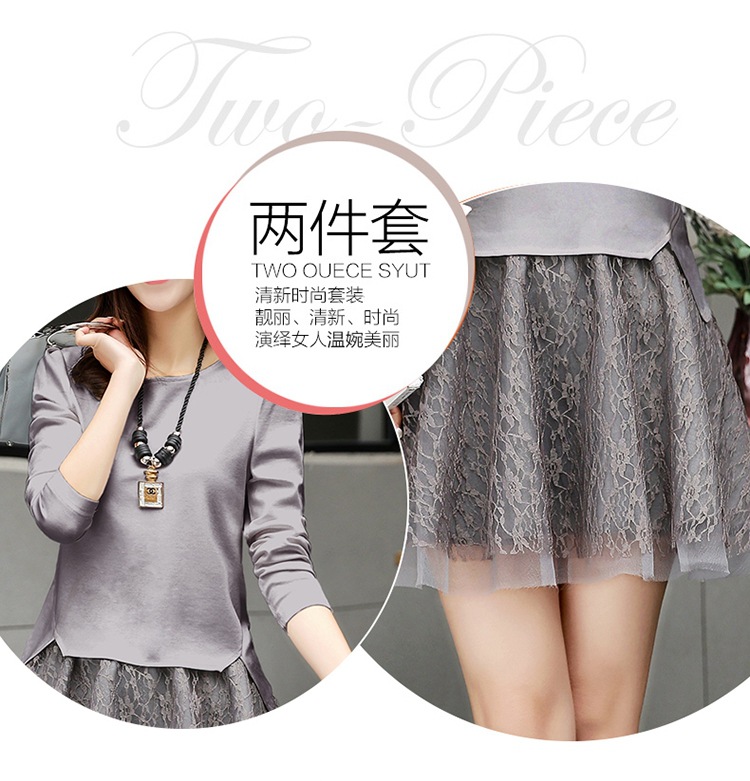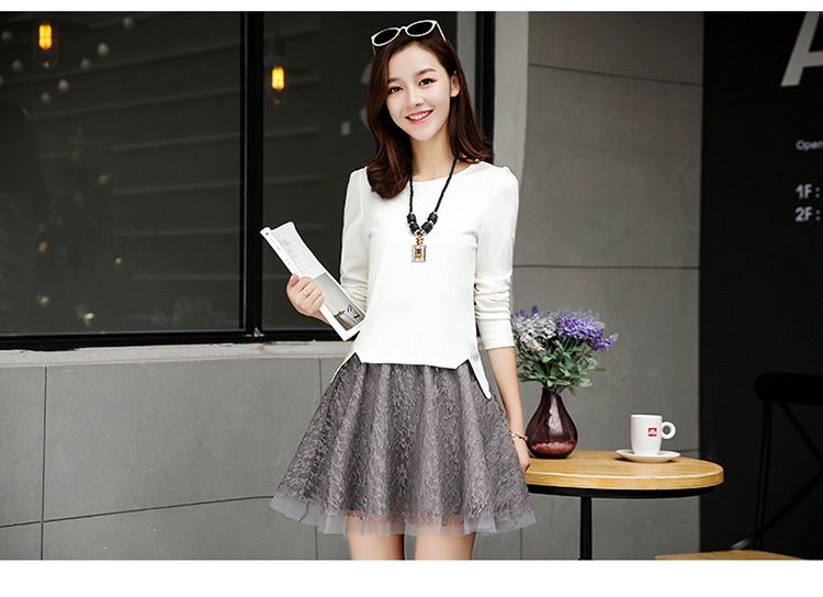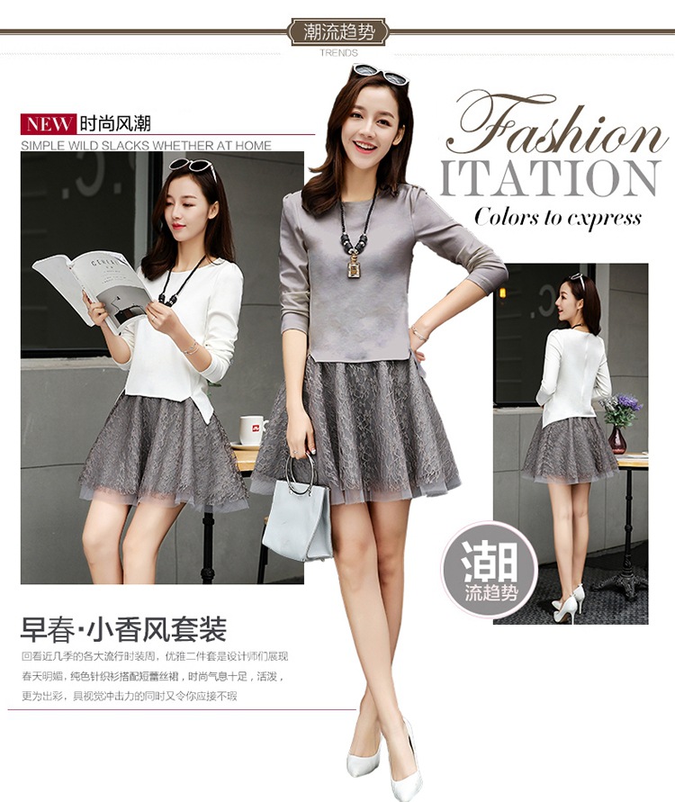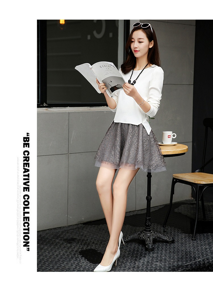 AL7619春季女款新装潮流衫+蕾丝半身裙时尚套装(送项链)