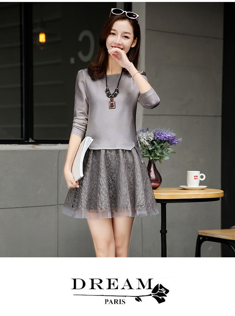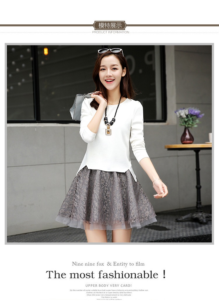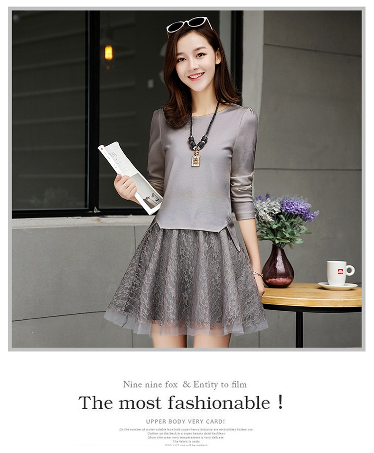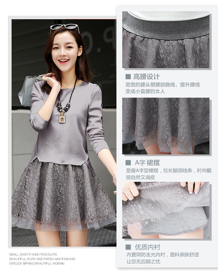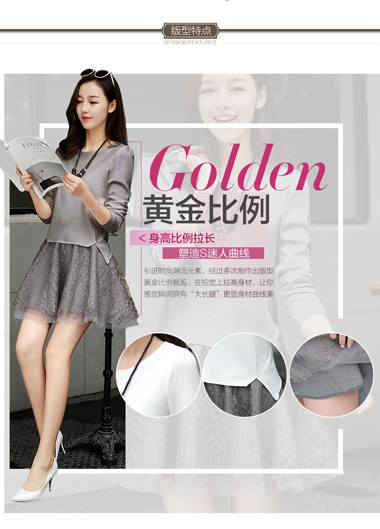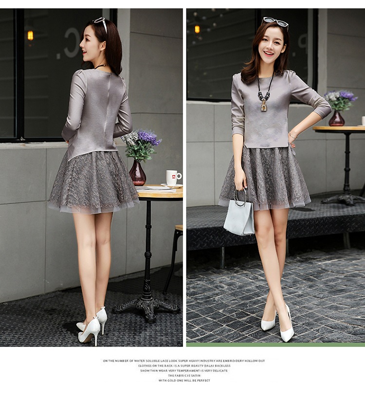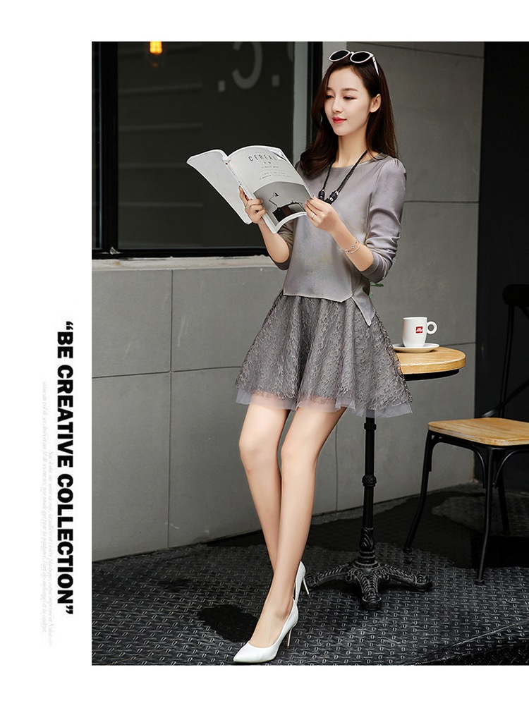 AL7619春季女款新装潮流衫+蕾丝半身裙时尚套装(送项链)