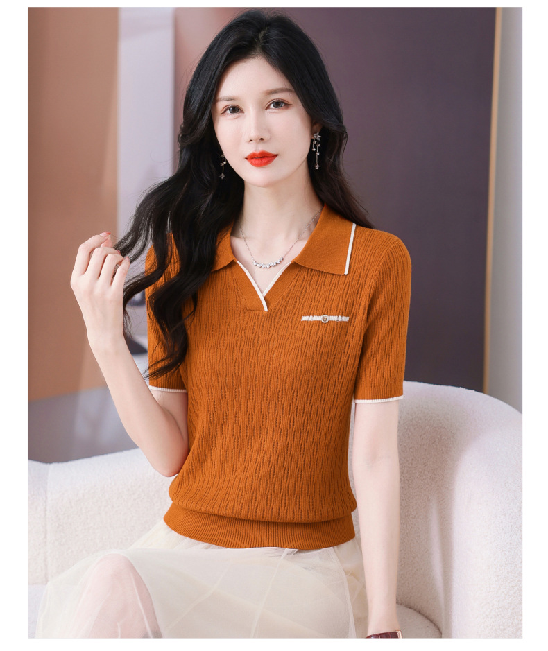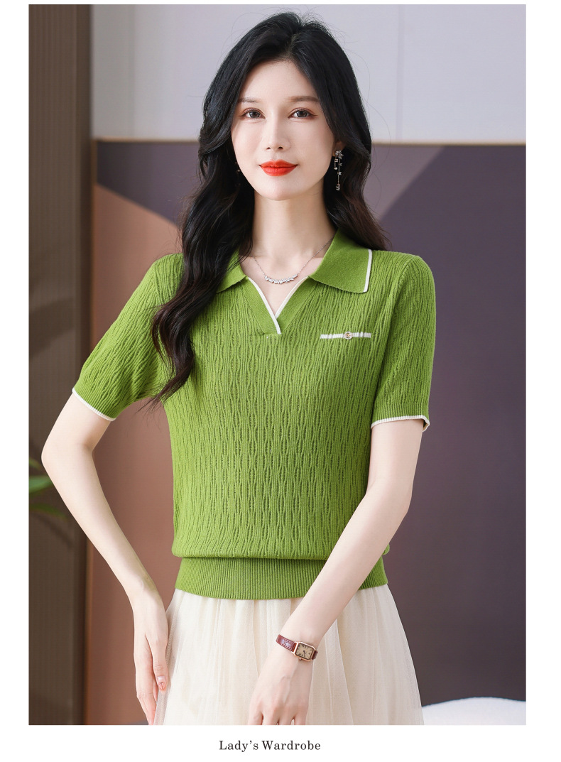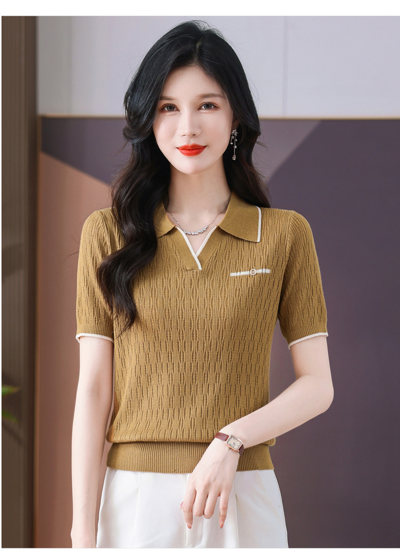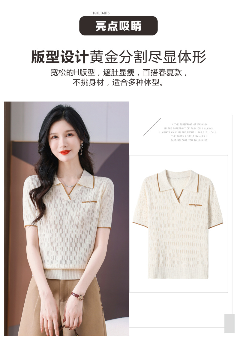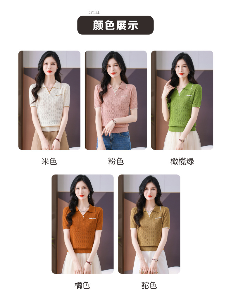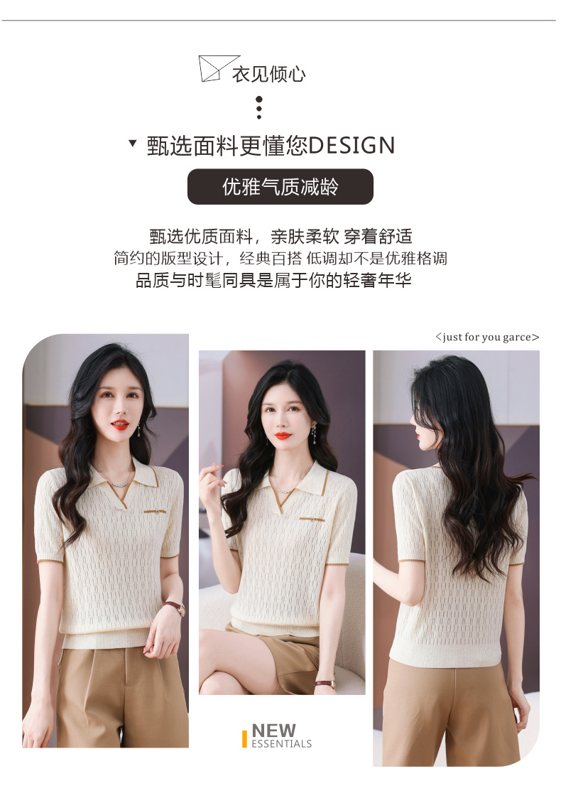 CC-QQH-9112短袖女t恤夏2024新款洋气时尚薄款针织衫polo领冰丝上衣
