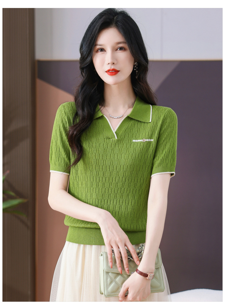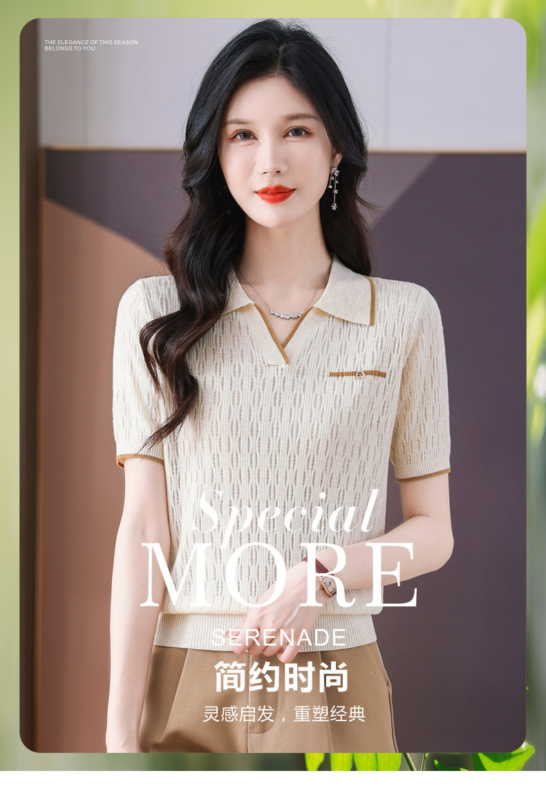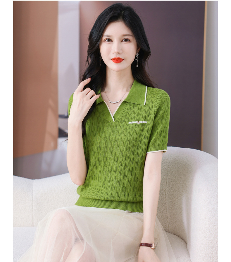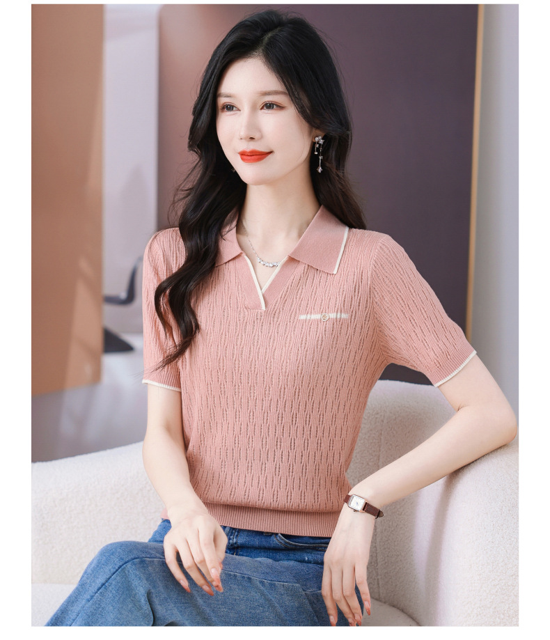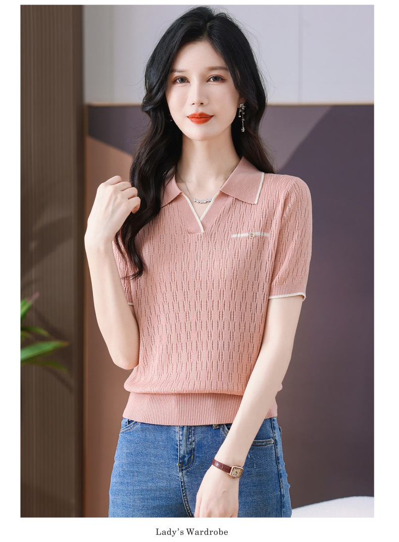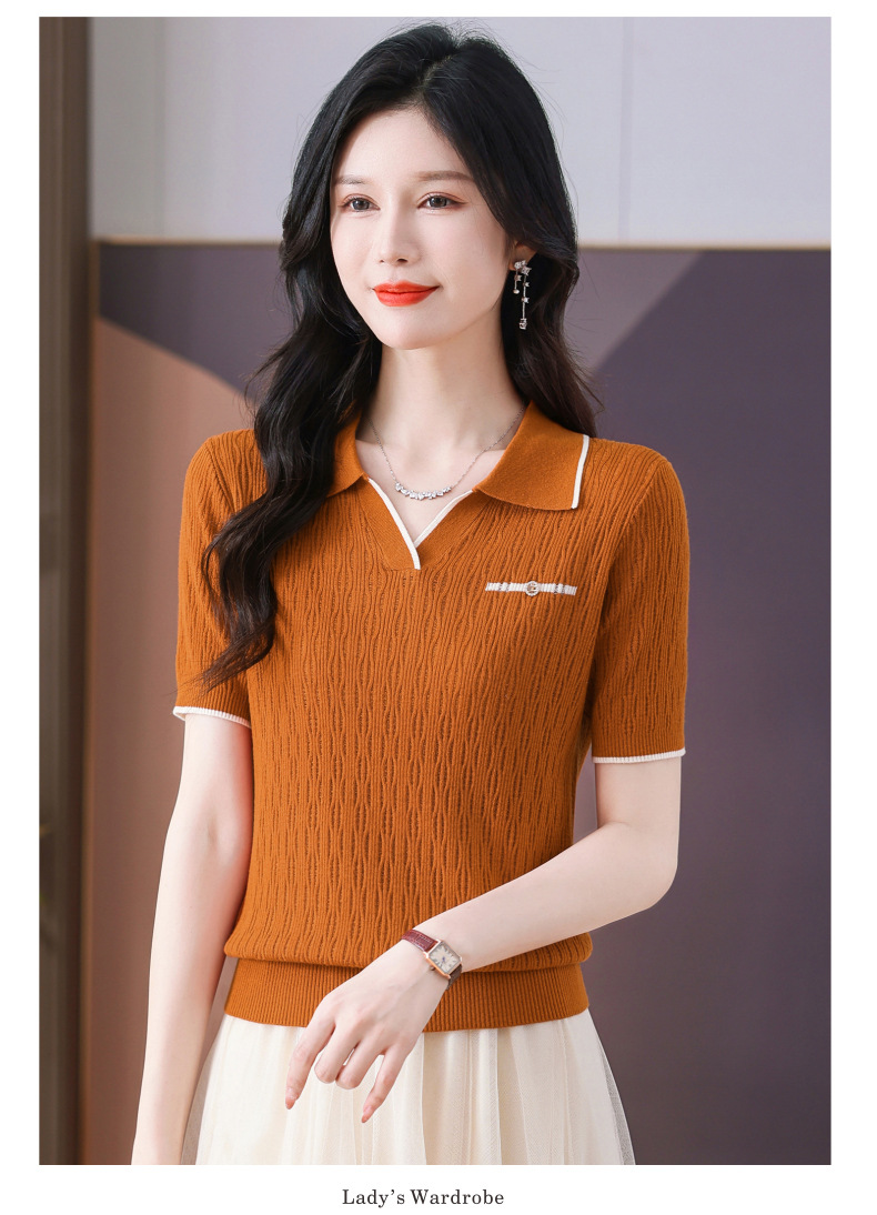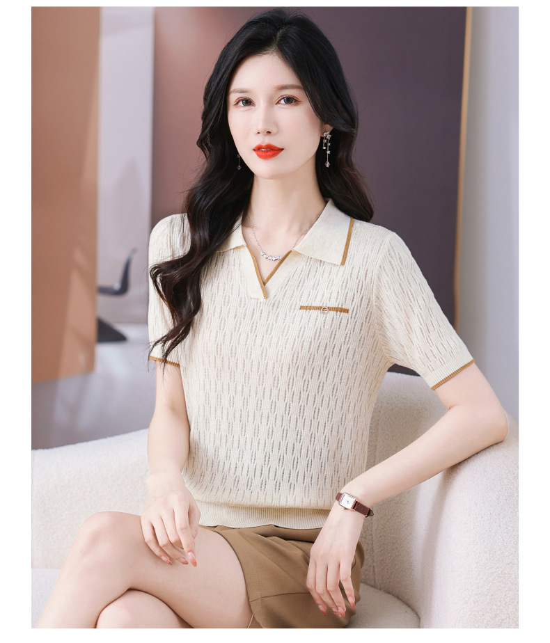 CC-QQH-9112短袖女t恤夏2024新款洋气时尚薄款针织衫polo领冰丝上衣