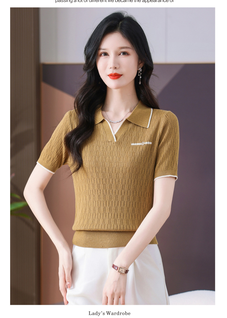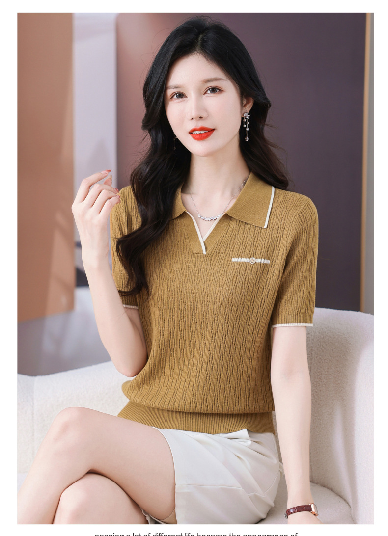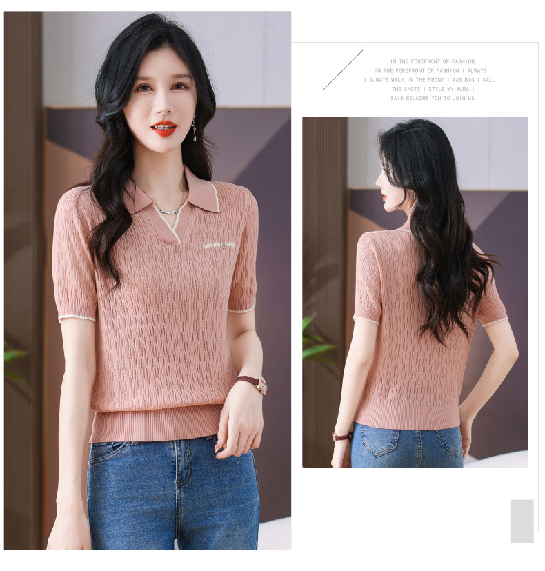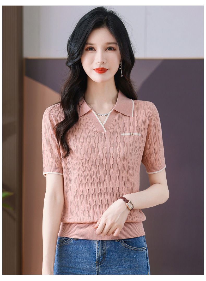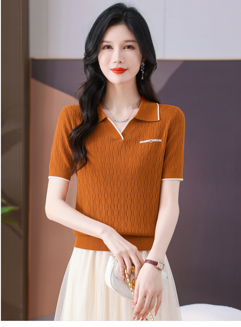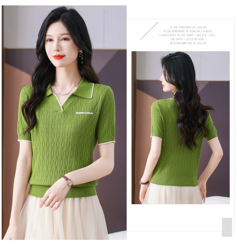 CC-QQH-9112短袖女t恤夏2024新款洋气时尚薄款针织衫polo领冰丝上衣