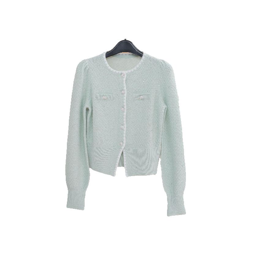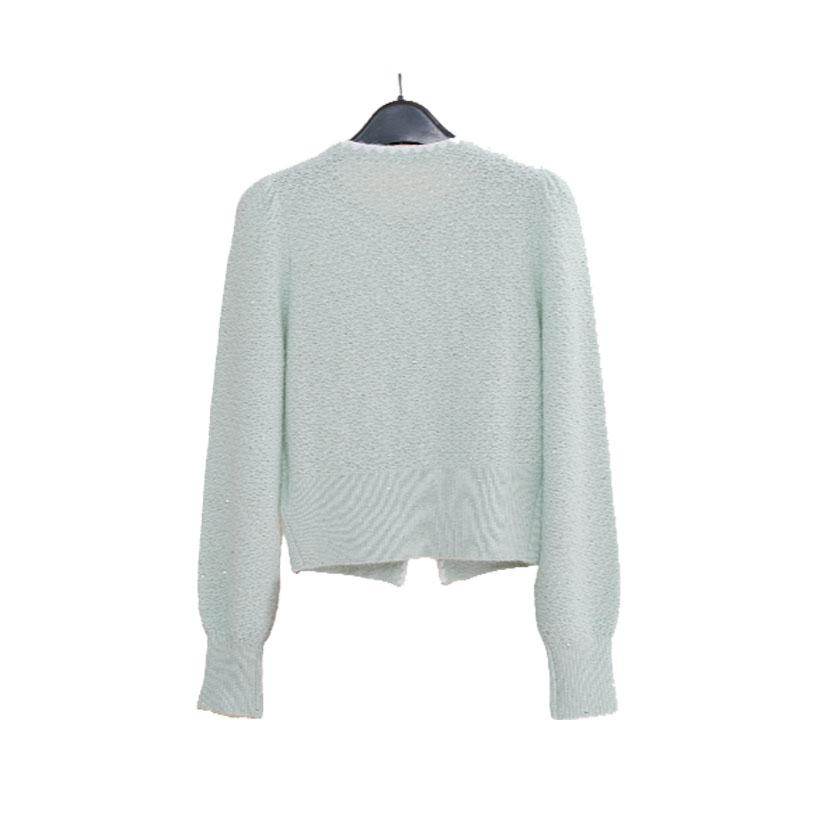 MAXRIENY精致优雅感针织外套女2024秋冬新款豆绿色针织外套开衫(货号:MF85SW504)