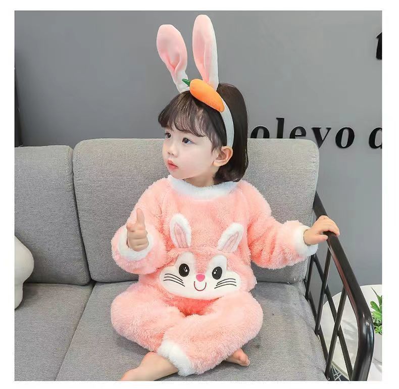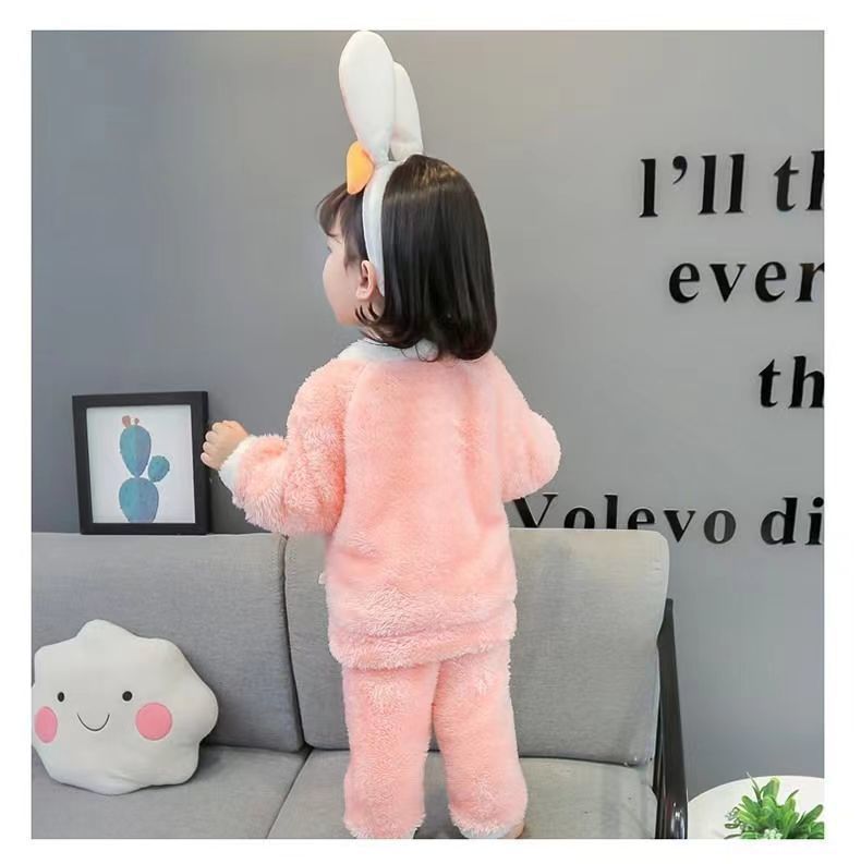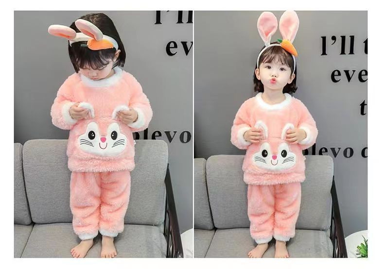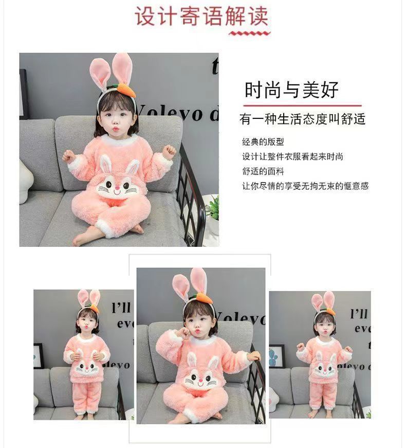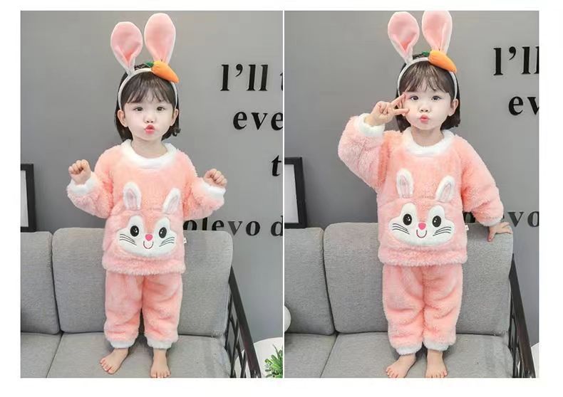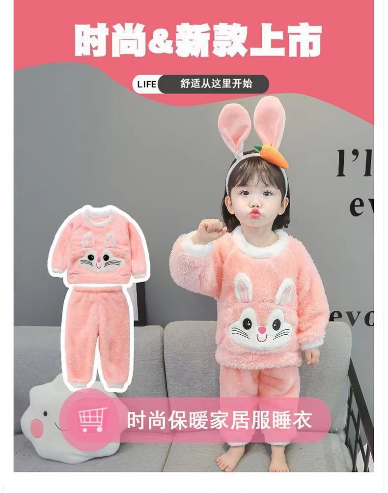 【时尚保暖!珊瑚绒宝宝睡衣】儿童秋冬家居服长袖套装加厚绒保暖两件套,长袖加厚保暖设计,轻盈舒适又不失风格。ry