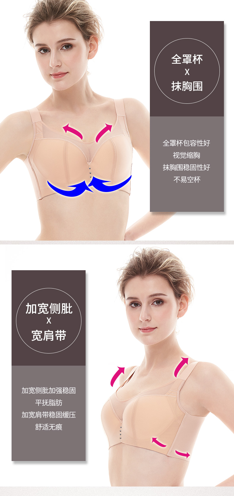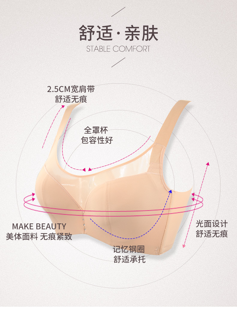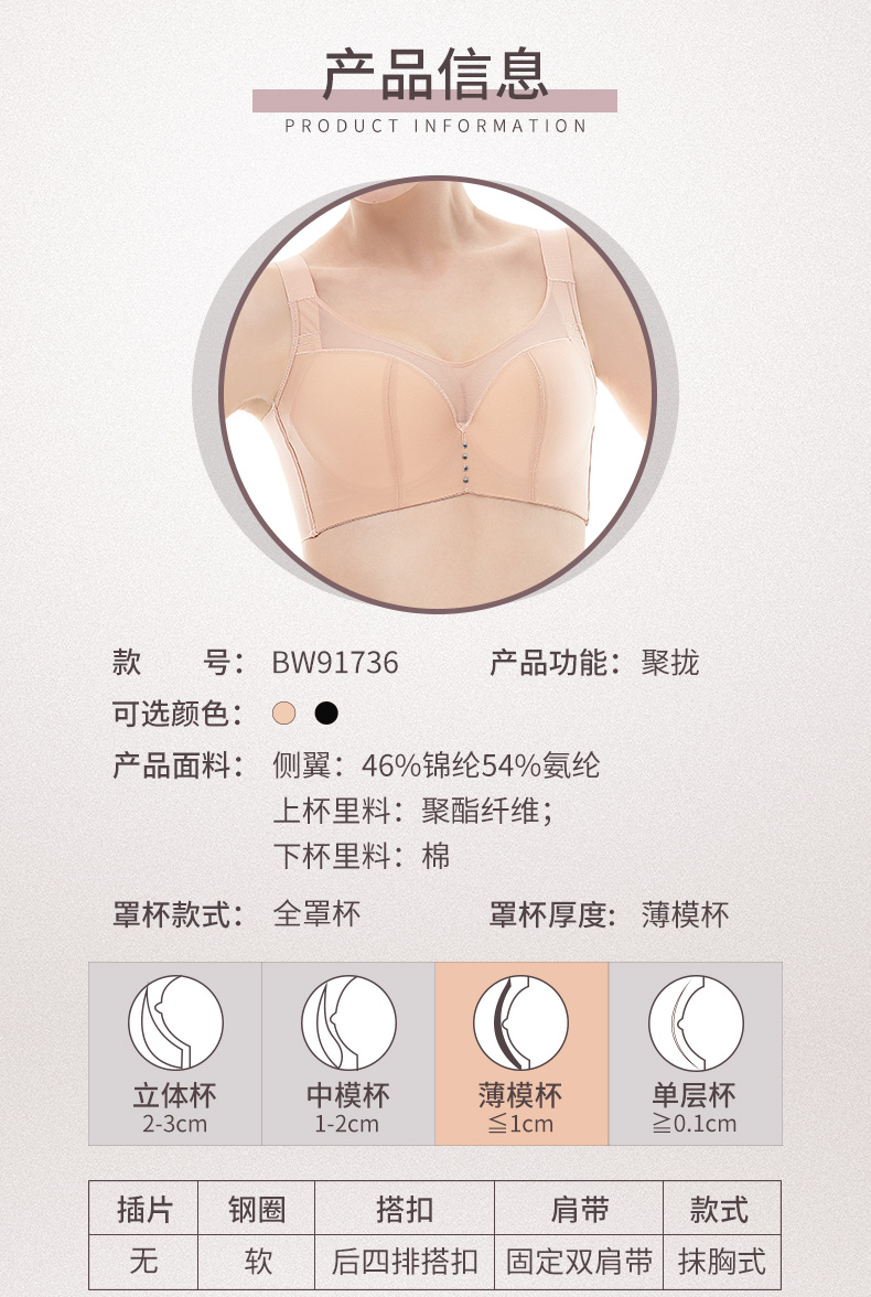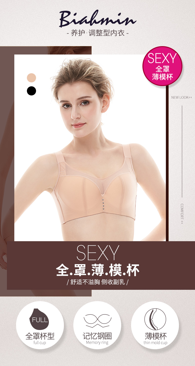 贝佳人舒适无痕亲肤文胸聚拢调整型防外扩侧收收副乳胸罩BW91736