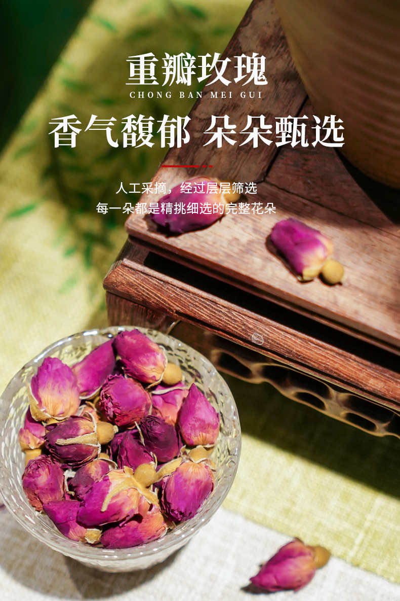 湖畔居重瓣红玫瑰花茶精选头采饱满花蕾冻干女生泡水饮品送礼优选
