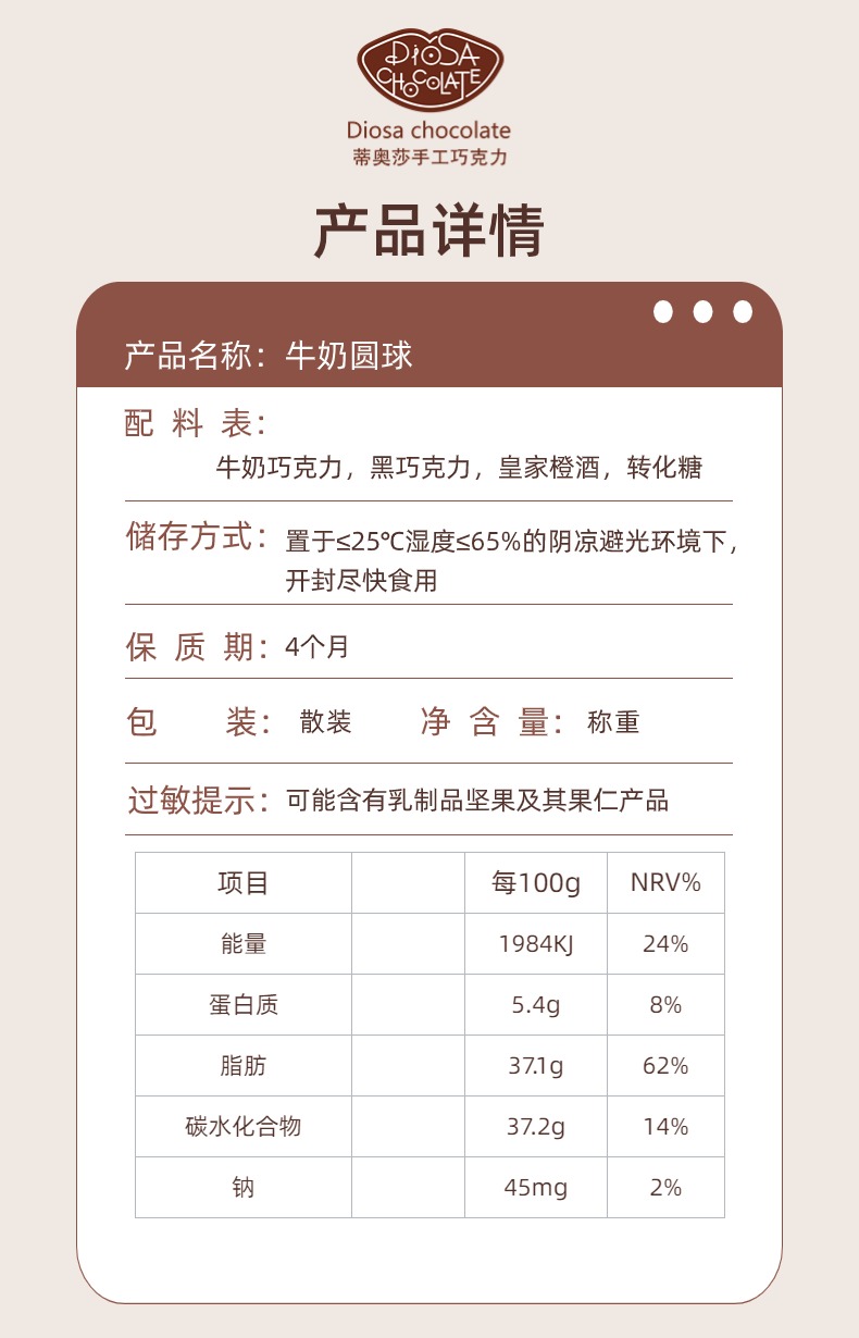 DIOSA_ 牛奶圆球牛奶_巧克力 白兰地和黑巧融合夹心