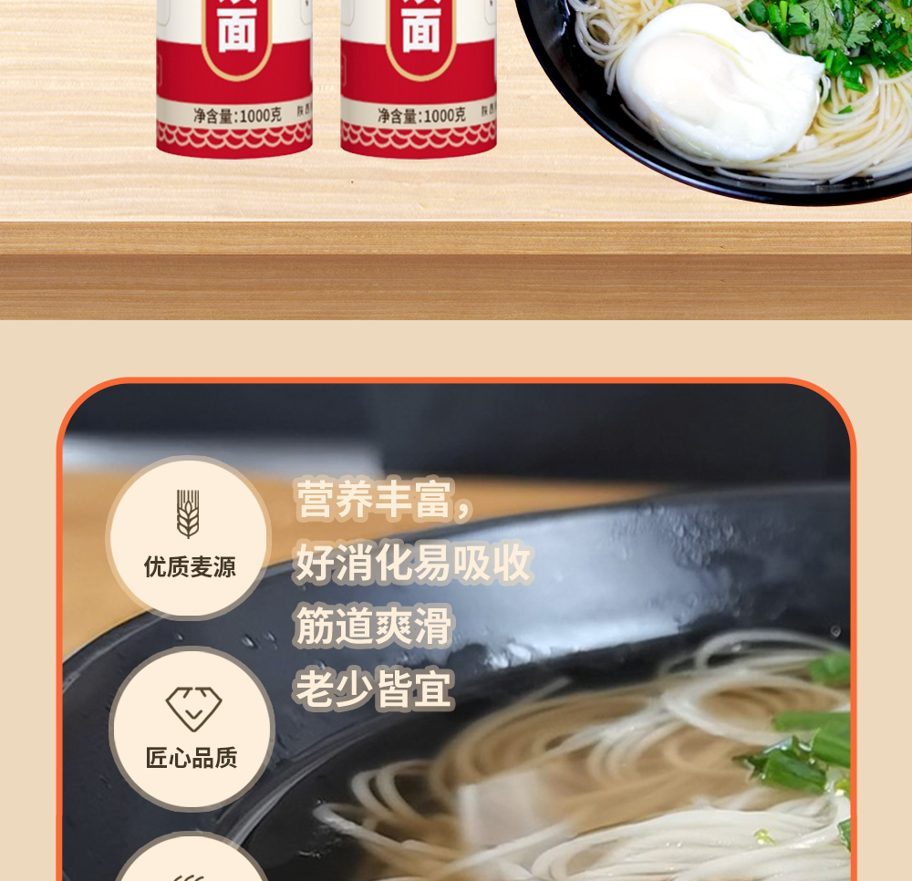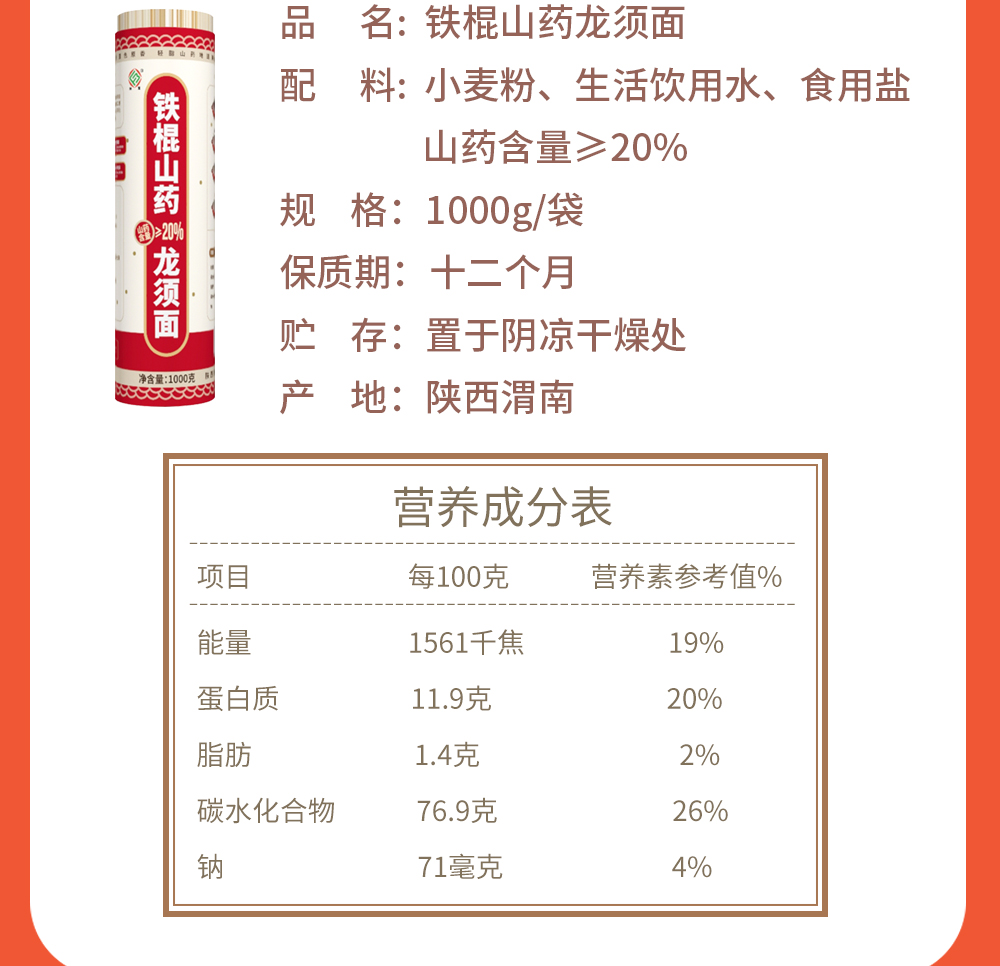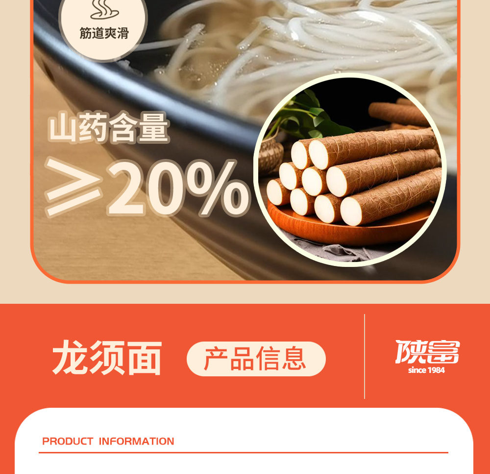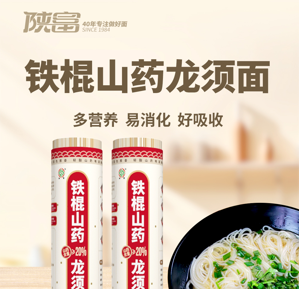 【陕富】铁棍山药龙须面 1000g*3包装 细腻柔软营养筋道面条凉面汤面