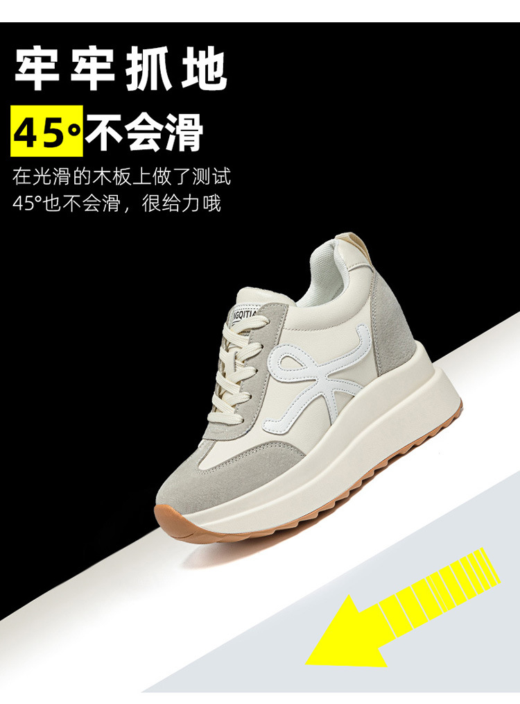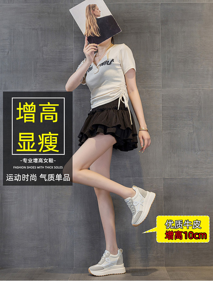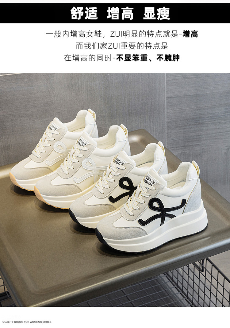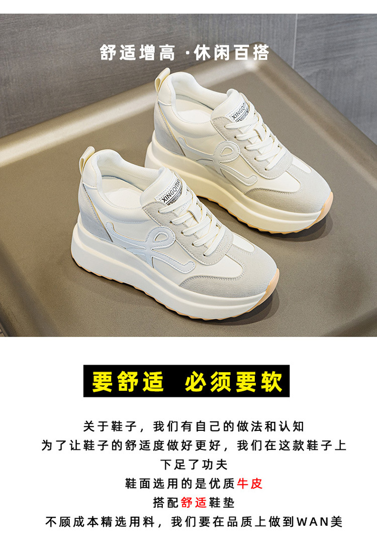 2025内增高真皮春秋小个子松糕鞋厚底坡跟小白鞋AM1320