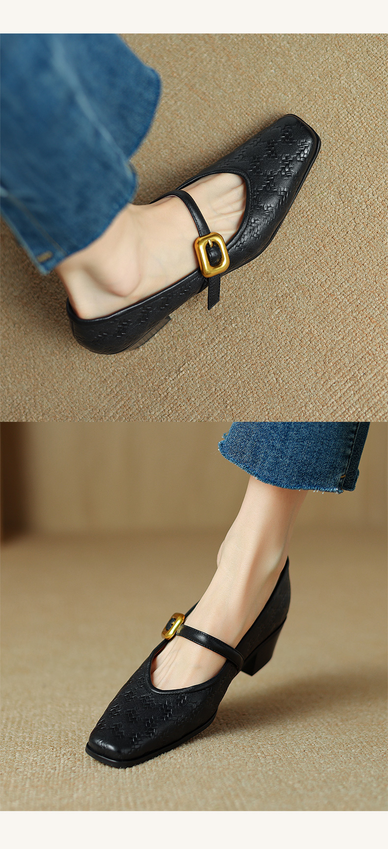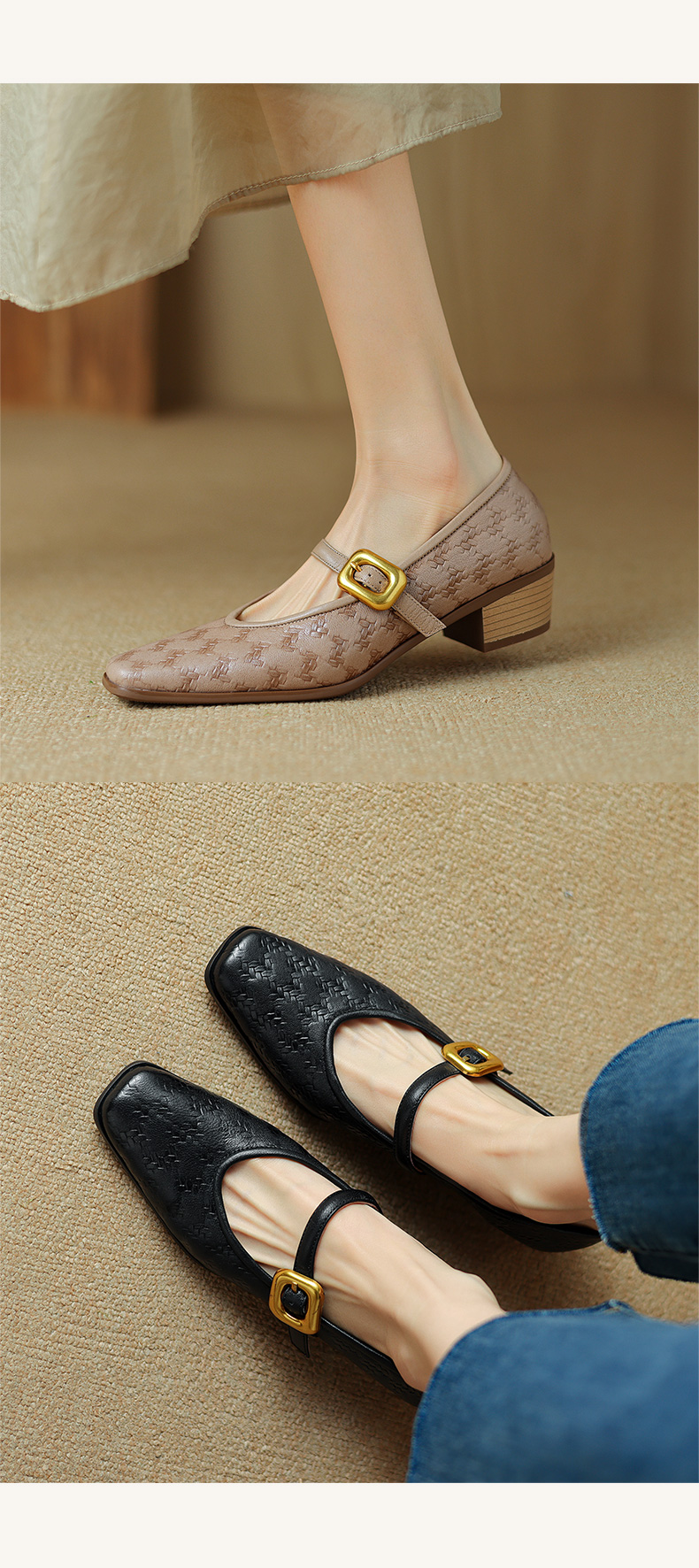 舒适简约,头层羊皮小高跟浅口单鞋DTN-B1066-1