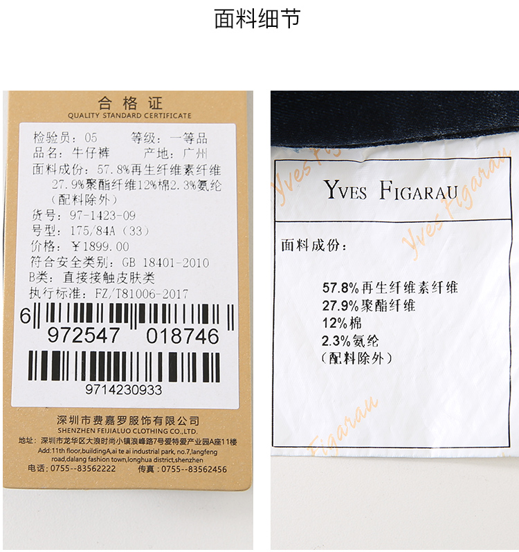 YvesFigarau伊夫·费嘉罗新款牛仔裤971423