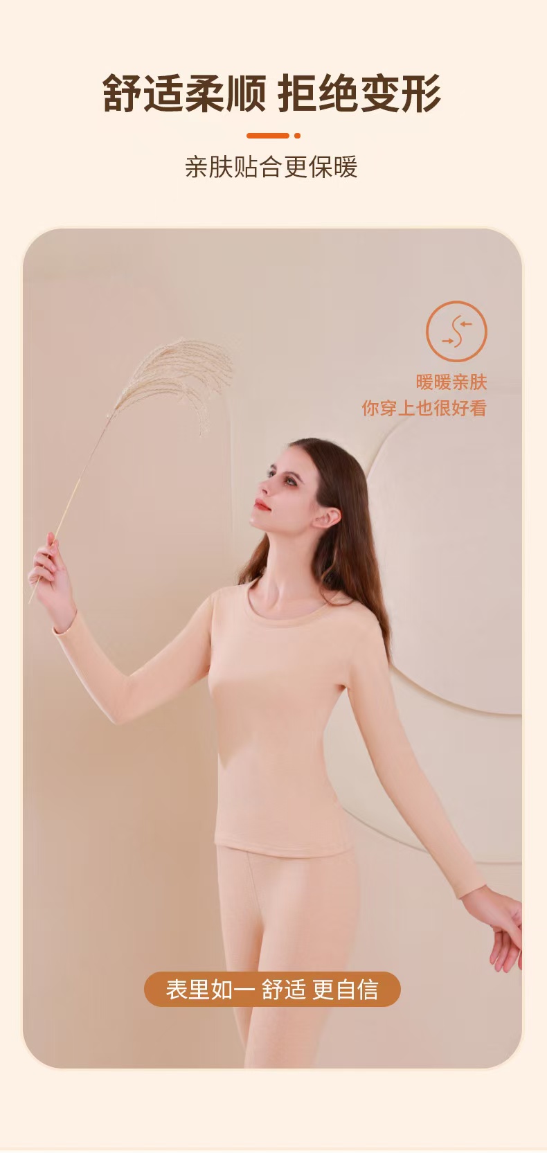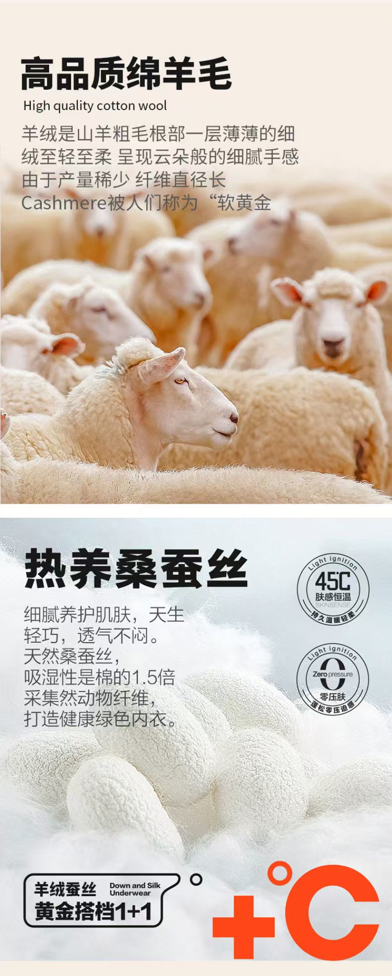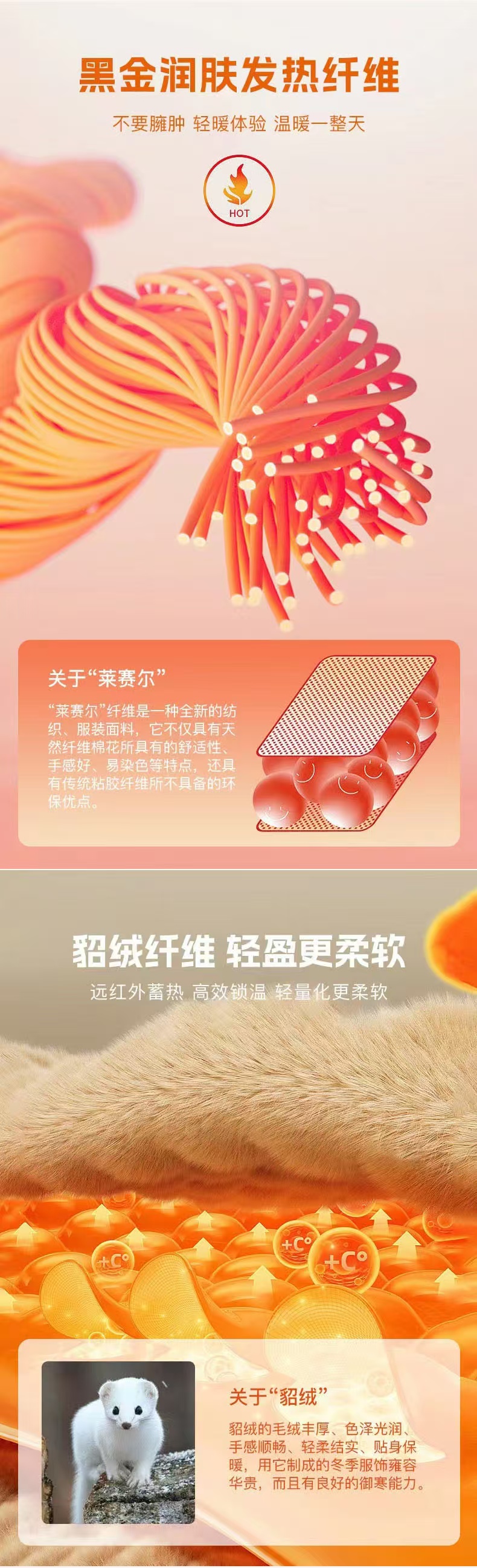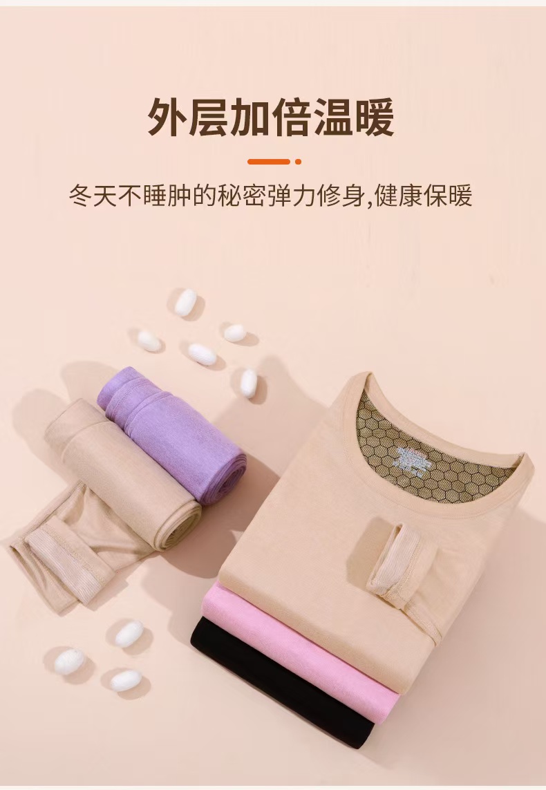 样衣清仓!【黑金石墨烯】貂绒羊毛蚕丝保暖内衣套装