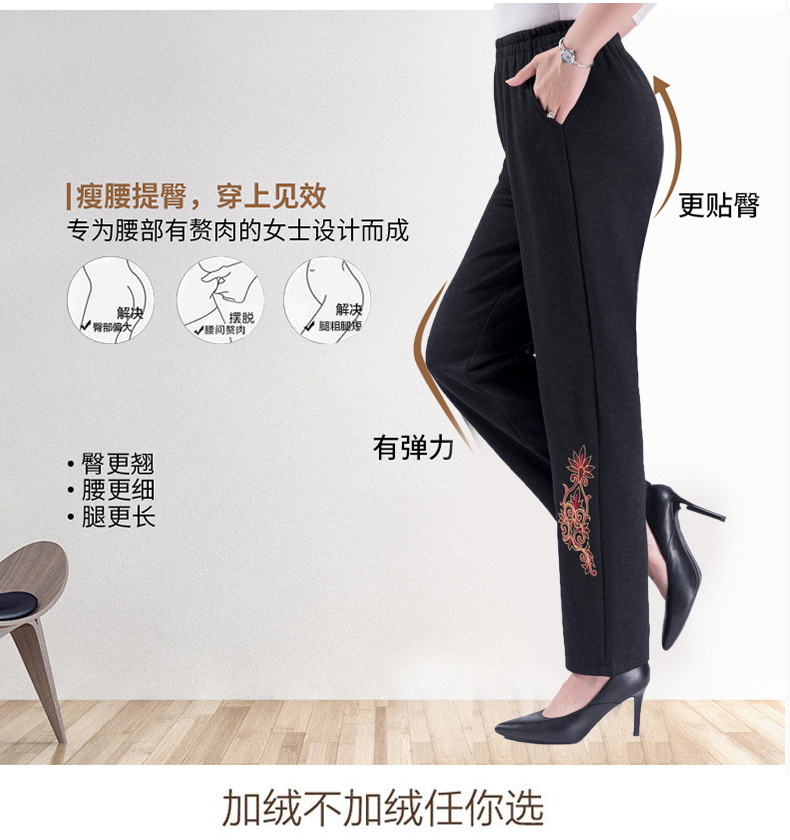 YMS-AA7849中老年人女裤秋冬款长裤外穿奶奶宽松妈妈加绒裤