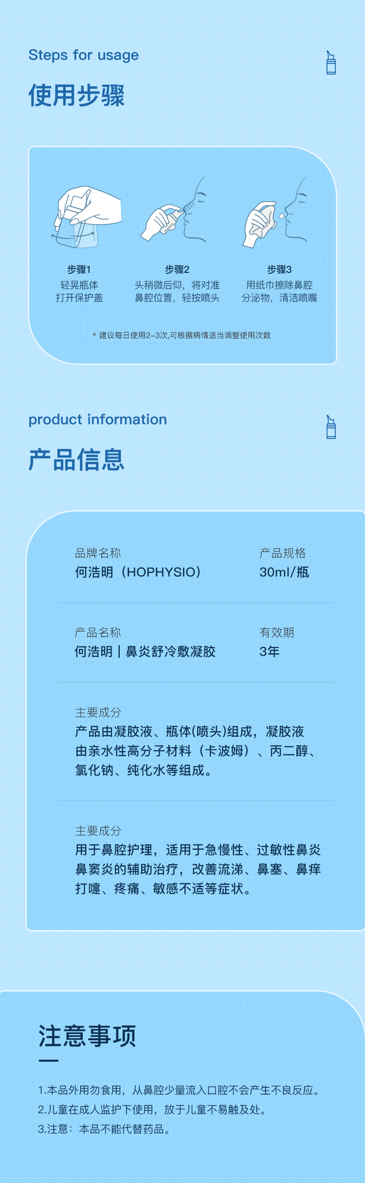 加拿大国民品牌 何浩明鼻炎舒冷敷凝胶 喷头可拆卸清洗,不易滋生细菌 30ml/支